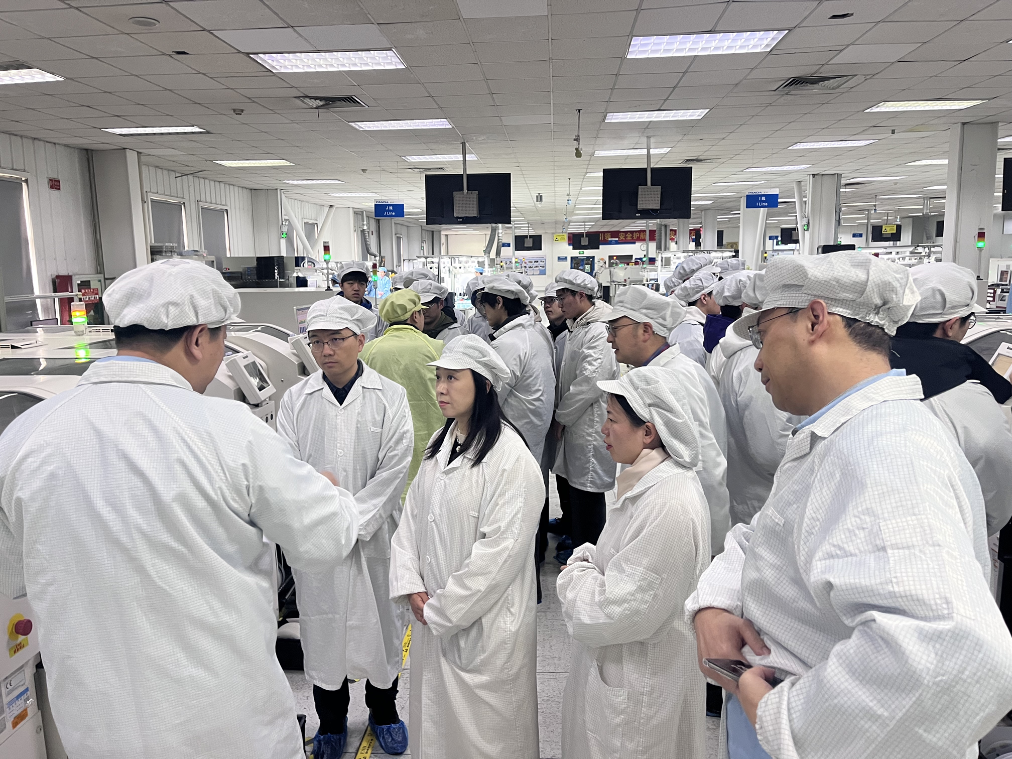 为深入贯彻教育部“访企拓岗”促就业专项行动要求,3月18日下午,电子与信息工程学院党委书记张明菊、副书记叶玉娣、副院长周华携46名师生赴南京熊猫电子制造有限公司参观交流,旨在深化校企合作,拓宽毕业生就业渠道,精准对接人才供需。南京熊猫电子制造有限公司党委书记兼总经理万磊、党委副书记兼党群工作部(人力资源)主任魏天、研发中心主任贾庆生、党群工作部(人力资源)主任助理苗燕、南京华格电汽塑业有限公司党委书记兼总经理陶炜全程陪同参观和座谈。