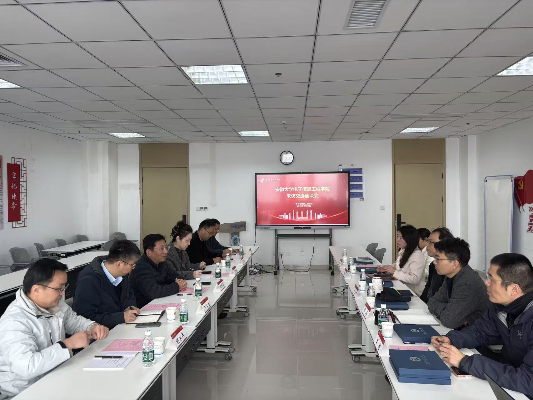 3月19日上午,安徽大学电子信息工程学院党委副书记、院长杨利霞一行来访我院,围绕本科专业人才培养方案修订、实验室建设、学生思想政治教育、纪检监察等工作开展调研交流。电子与信息工程学院院长张治中、党委副书记兼副院长叶玉娣、副院长周华参加会议。会议由周华主持。