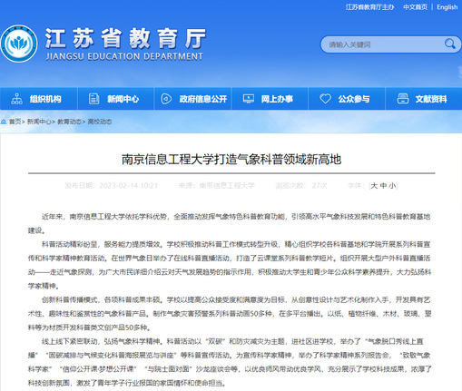 近年来,南京信息工程大学依托学科优势,全面推动发挥气象特色科普教育功能,引领高水平气象科技发展和特色科普教育基地建设。