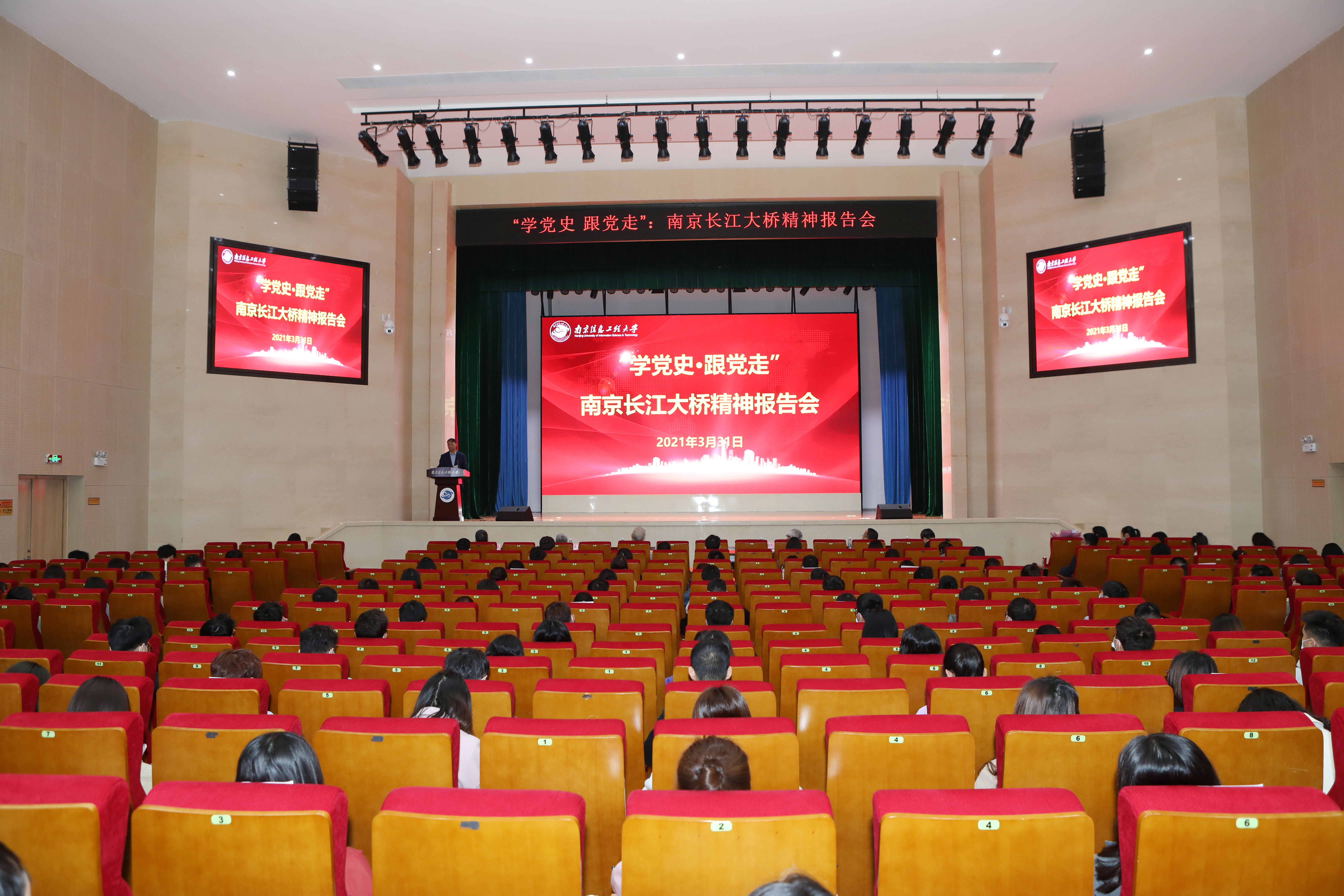 记者在会上了解到,此次报告会基于前期南信大马克思主义学院研究生“大桥精神”寻访课题组的调研成果,课题组调研的三位大桥建设者受邀到校,为学生们回顾了这座“天堑飞虹”艰苦卓绝的建造历程。