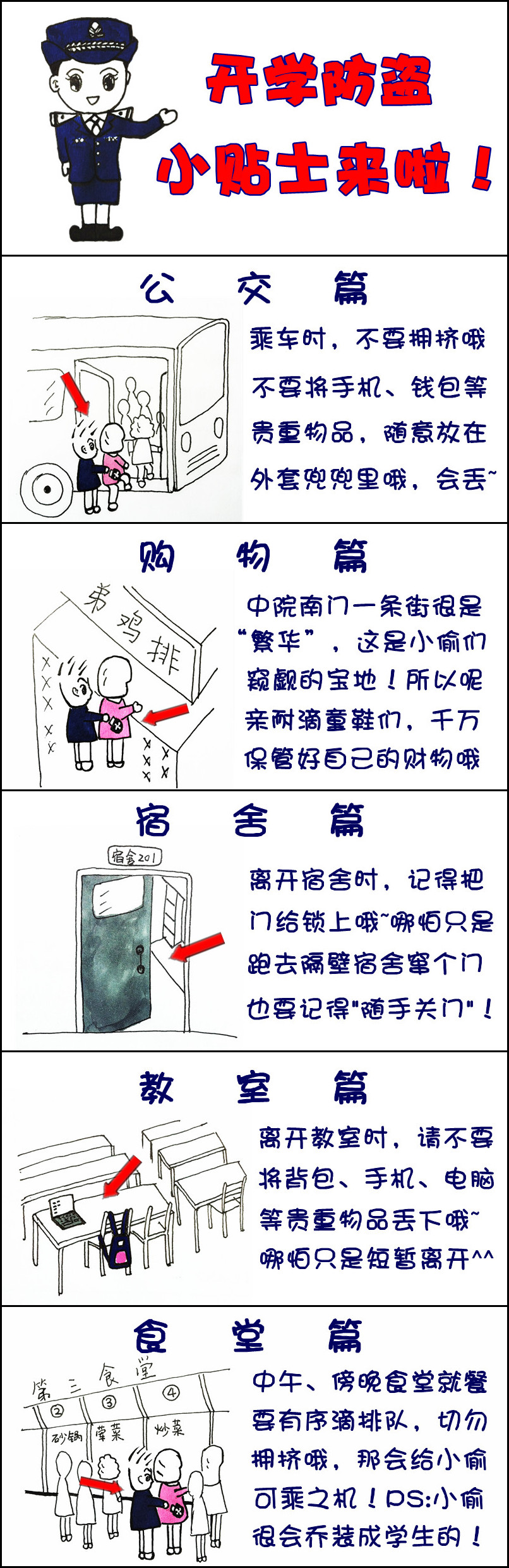 又是开学时节,欢迎大家归来,热烈鼓掌!虽然我知道,大家对于开学都是这样的心情!可素!你们来了,这里就热闹了啊!!小女警就不“孤单”了啊!为表欢迎,特奉上自创自制的“开学防盗小贴士”!小女警如此辛勤滴劳动,大家有钱没钱的来捧个场哈!