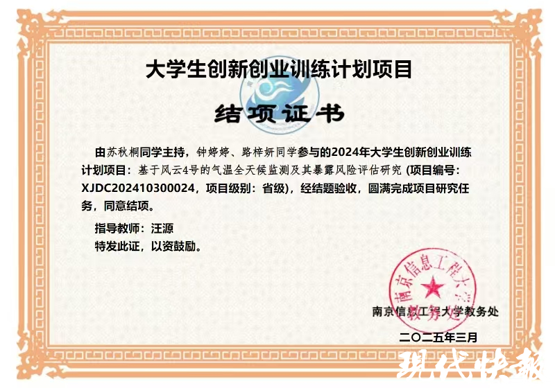 在汪源的感染与悉心指导下,他的学生们对科研产生了浓厚兴趣,并结出了实实在在的硕果:多人参与省级大创项目、获评南信大“优秀本科毕业论文(设计)”,更有同学以第一作者身份在SCI一区TOP期刊上发表论文,扎实地迈出了科研生涯的第一步。