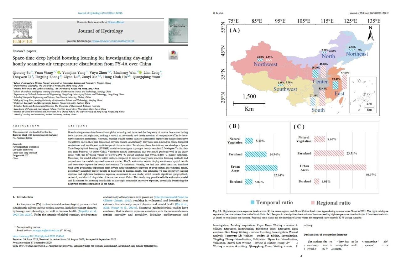 2023年博士毕业后,汪源加盟南信大,并持续深耕大气遥感领域。2025年,他以第一作者身份在Nature Communications发表的全球臭氧健康风险评估研究,通过AI驱动的高效计算,创造性地提出了一种全新的地理集成学习模型,建立了全球高分辨率臭氧浓度数据集。