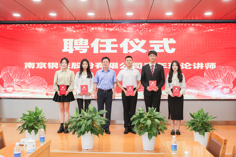 聘任仪式上,我校为全国劳模张欢、巾帼标兵赵亚娟、全国五一劳动奖章获得者张红军、全国技术能手黄龙等奋战于科技产业一线的南钢劳模颁发“南信大德育导师”聘任证书;黄一新为我校“青年使命官”研究生宣讲团成员、“青马工作坊”学生讲师等优秀研究生代表颁发“南钢青年理论讲师”聘任证书。金自康、王芳共同为“研究生实践创新基地”揭牌。