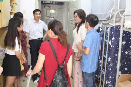 5日上午,管兆勇书记一行来到南信大无锡研究生院报到现场,向工作人员详细询问了研究生迎新的准备工作和研究生报到情况,随后他走进研究生宿舍仔细查看宿舍环境和设施配备情况,并和研究生新生、新生家长交谈。