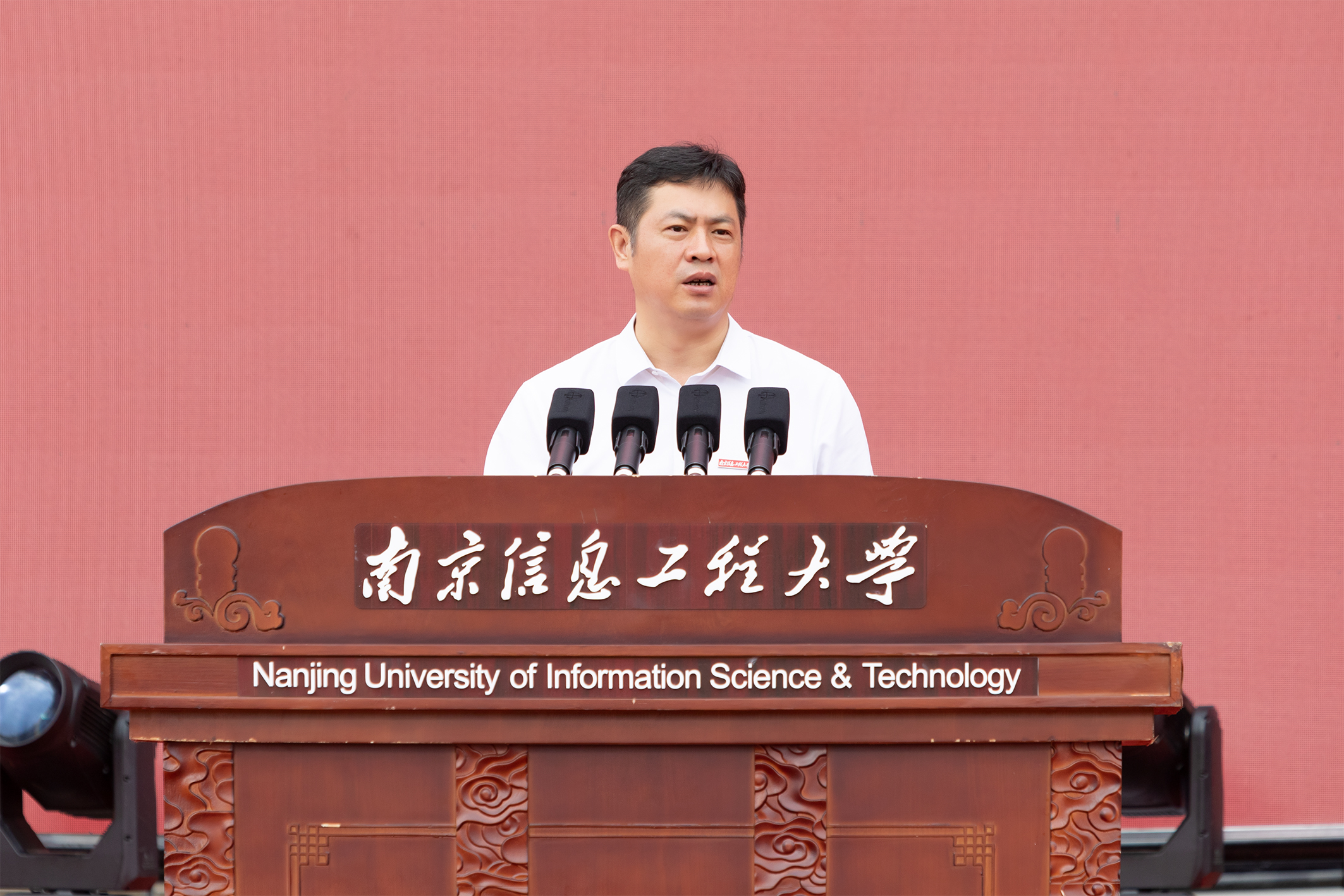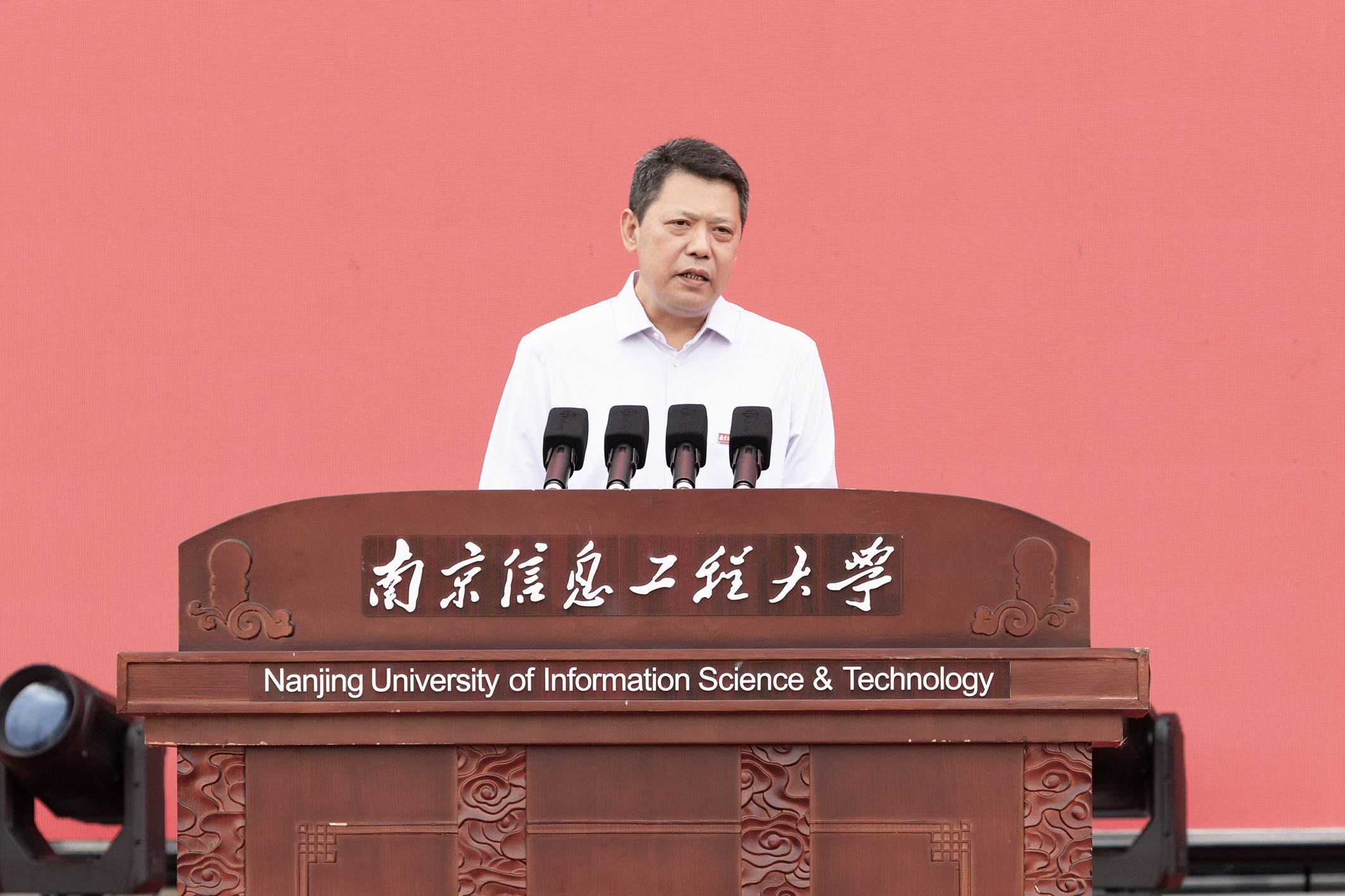 校长陈海山首先代表全校师生员工和海内外校友,向2025级新生表示热烈欢迎,并向一路培育、陪伴他们的家长与老师致以崇高敬意。他回顾了学校坚守“为党育人、为国育才”的办学历程,学校学科实力强劲,大气科学入选国家“世界一流学科”,10个学科进入ESI全球前1%;科教资源优渥,拥有首批教育部“拔尖学生培养计划2.0”基地、入选首批“国优计划”项目,建有全国重点实验室2个;名师大家荟萃,拥有高素质教师队伍与国家级教学团队;校园处处是风景、处处有温暖。校园风景雅致、设施完善,致力于提供全方位的支持。