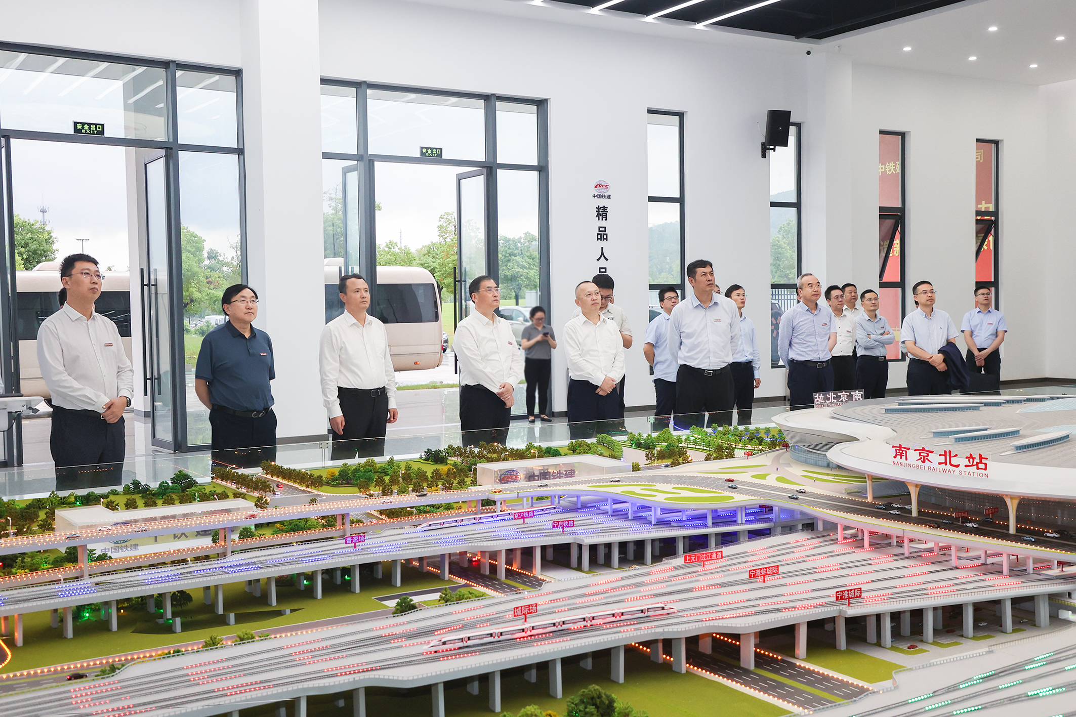 在中铁建设集团南京北站一体化指挥中心,调研组深入了解南京北站作为国家级综合交通枢纽的未来规划发展,双方就如何依托枢纽经济平台推动技术成果落地、共建产学研用合作基地等合作可能性展开初步探讨。