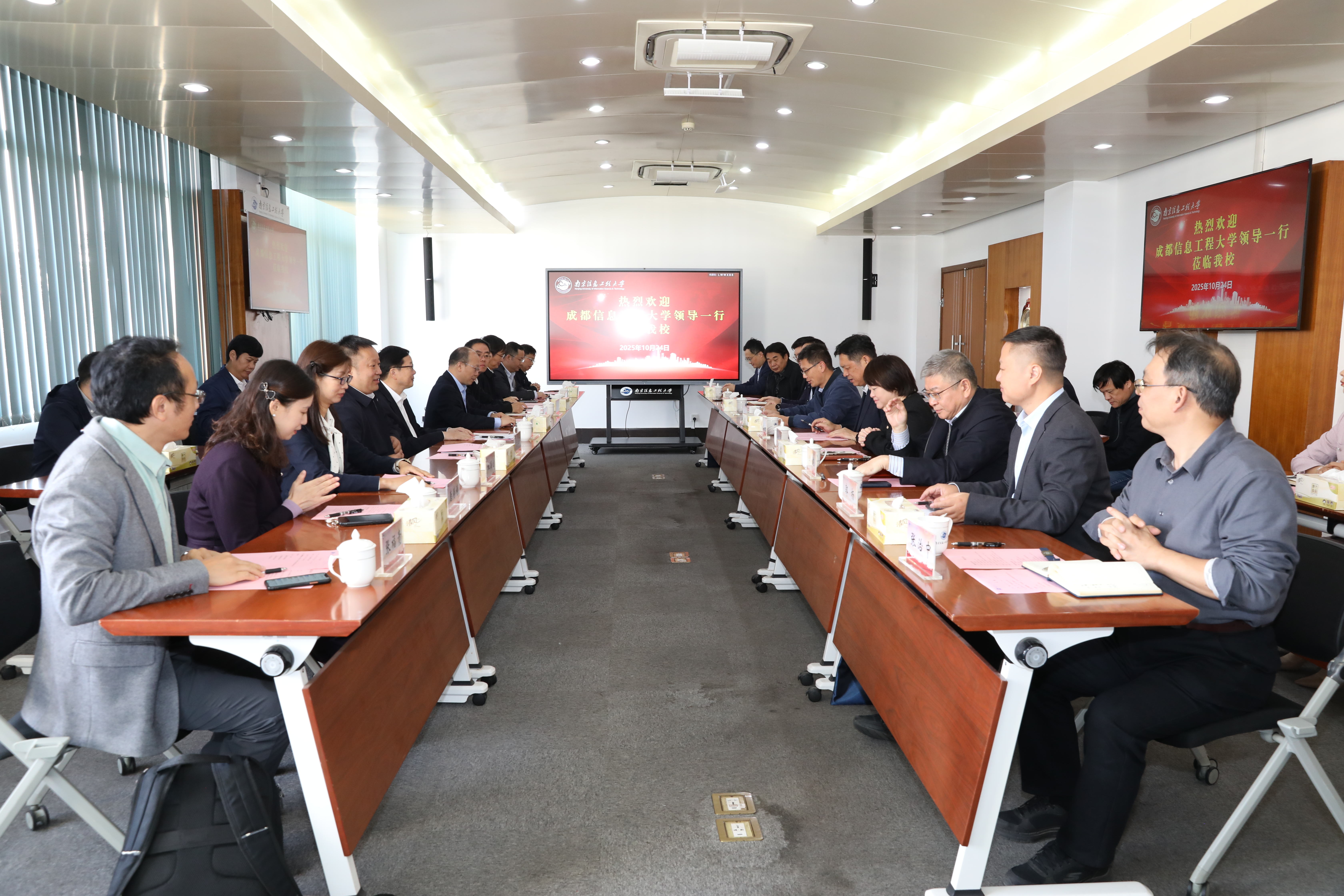 10月23-24日,成都信息工程大学党委书记沈火明、校长何建新、副校长舒红平一行来校调研交流。我校党委书记尚洪波会见了成都信息工程大学一行,我校校长陈海山、副校长赵强、刘佳出席两校座谈会。