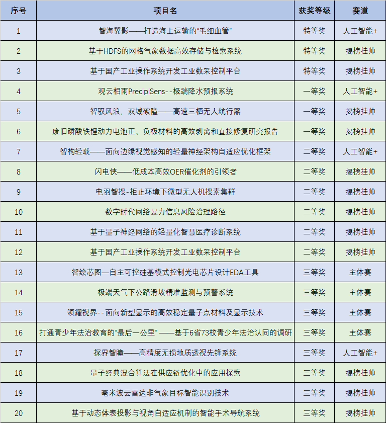 自2024年9月校赛启动以来,由校团委统筹牵头,在相关部门、学院的协同配合及校内外专家的倾力指导下,参赛团队全力以赴、团结拼搏。经过严格的学院选拔与多轮校内评审,我校最终遴选出优秀团队晋级省赛,并一路历经江苏省赛、全国决赛的层层角逐,斩获国赛特等奖3项、一等奖3项、二等奖6项、三等奖8项。其中海洋科学学院《智海翼影——打造海上运输的“毛细血管”》、软件学院和大气科学学院《基于HDFS的网格气象数据高效存储与检索系统》和自动化学院《基于国产工业操作系统开发工业数采控制平台》项目荣获国赛特等奖。