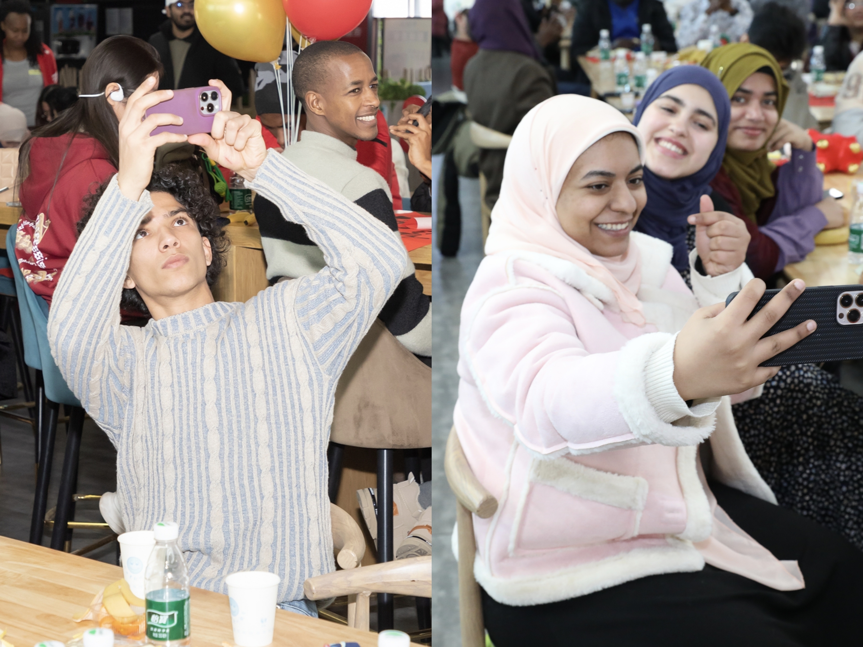 下午,中苑老食堂二楼年味浓郁、热闹非凡,2026年“骏马贺新春·‘信’彩中国年”春节联欢游园会在此举行。校领导尚洪波、陈海山、刘佳、章炎麟,以及相关部门负责人、留校中外师生欢聚一堂,共同迎接丙午马年的到来。活动由国际教育学院承办。
