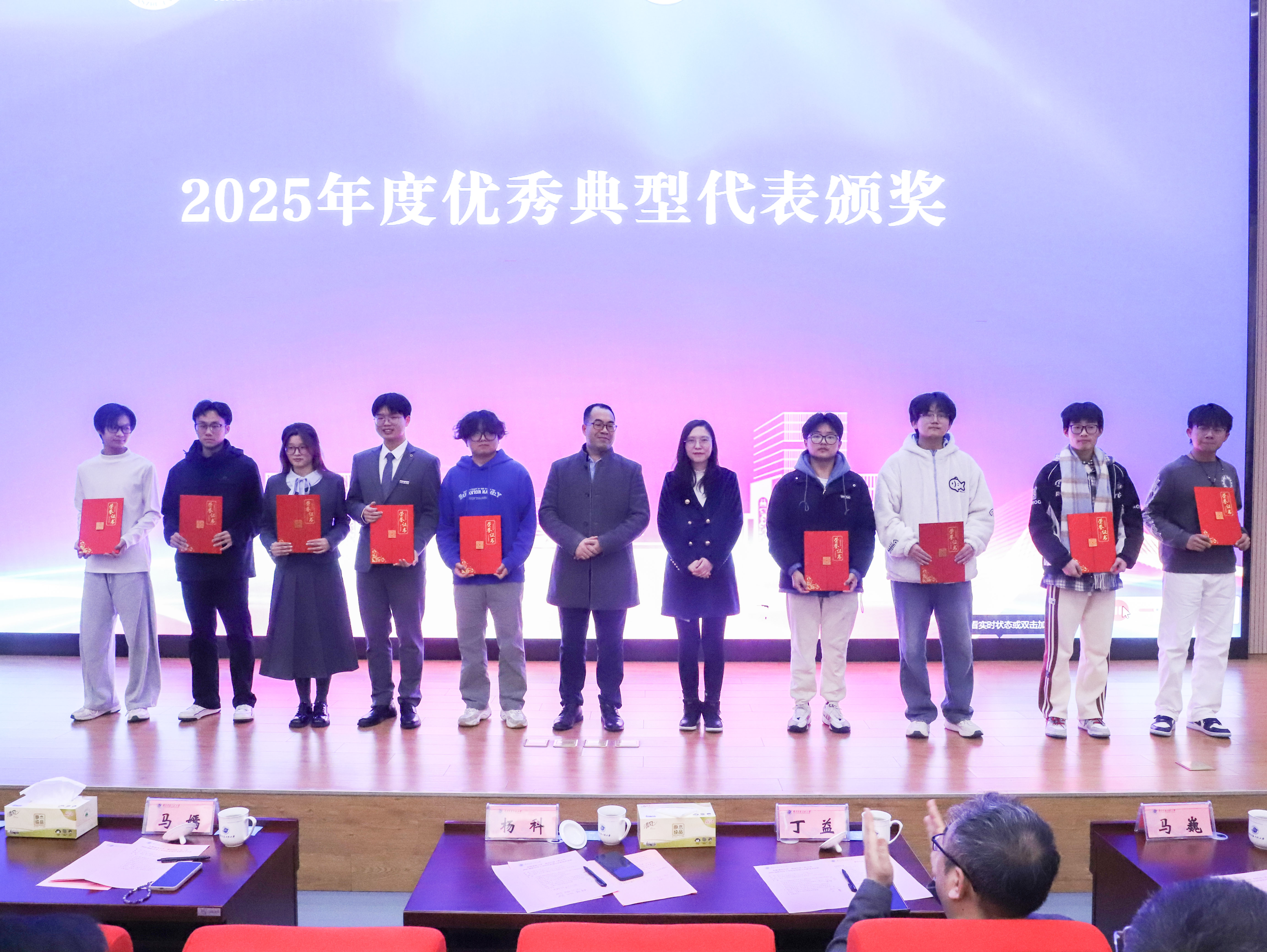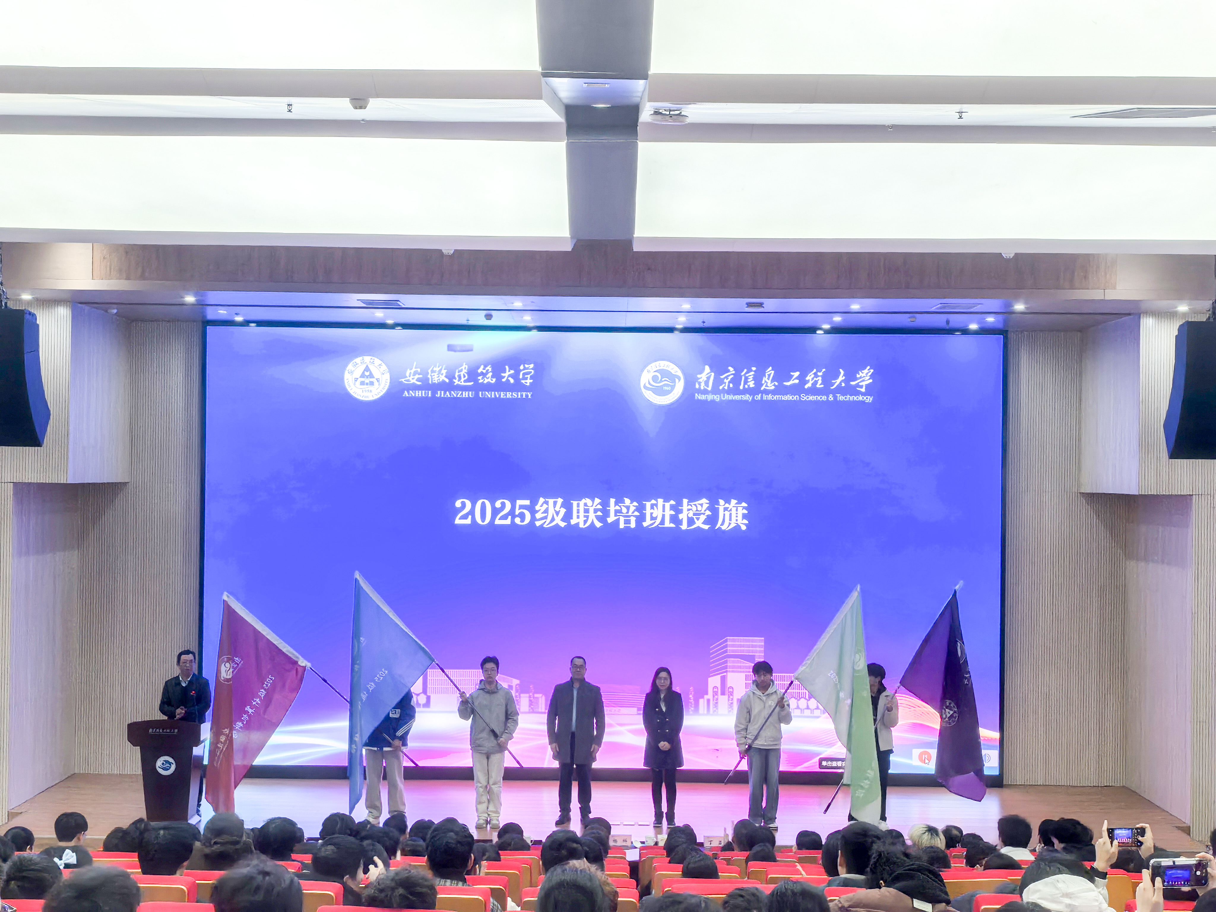 会上,杨科、马嫣共同为2025年度联培班优秀典型学生代表颁奖,并为2025级联合学士学位培养项目班级授班旗。