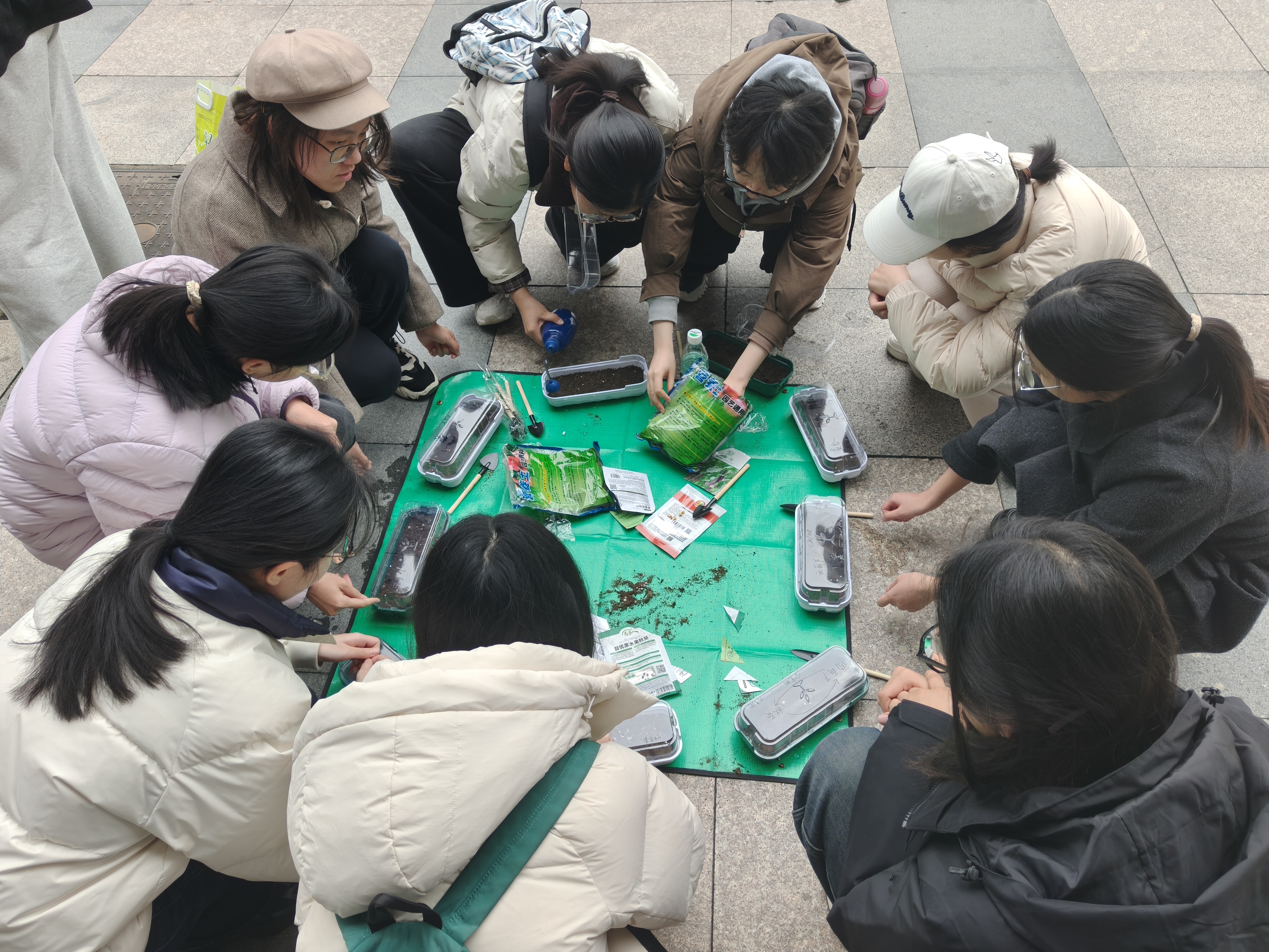 当天,大气科学学院“洞悉风云,奔赴山海”气象日系列活动校内科普专场,通过校园快闪、创意集市等形式,普及气象知识,传播防灾减灾与生态保护理念。校内科普专场在明德楼老校门前设立气象观测区、闯关游戏区、签名承诺区三大主题体验区,吸引众多同学驻足参与。大气科学学院还在晖园社区广场举行了“大气·耕读”劳动实践育人品牌——“春分育苗·气象同行”主题育苗活动。活动将气象专业知识融入农耕实践,结合气象学原理,从温度、湿度、光照等因子科普种子萌发与气象条件的关系。同学们在播种中体会天气气候对农业生产的影响,涵养学以致用的情怀。