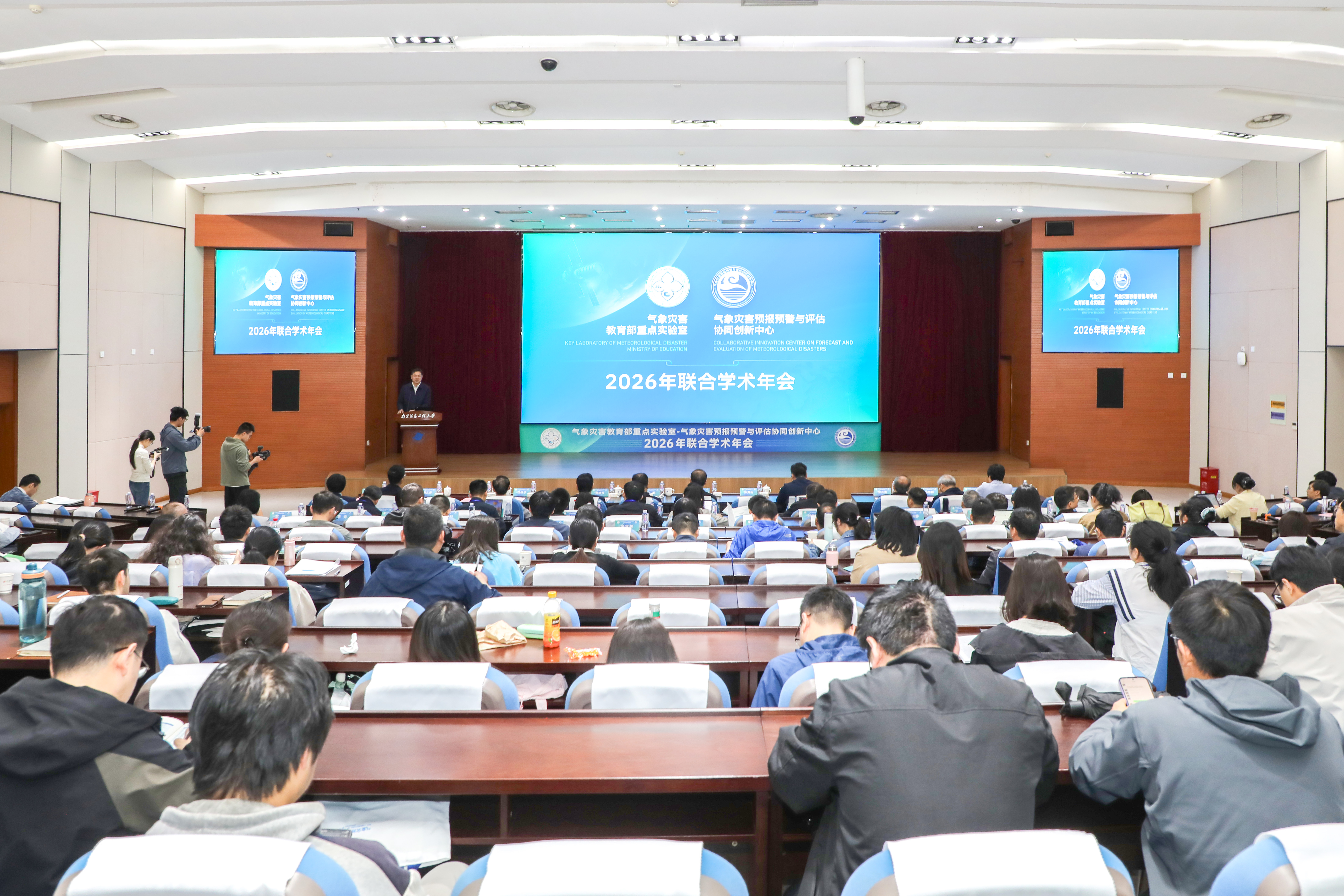 4月28日至29日,气象灾害教育部重点实验室—气象灾害预报预警与评估协同创新中心2026年联合学术年会在我校举行。中国气象局兰州干旱气象研究所张强院士,江苏省教育厅科学技术与产业处处长韩叶祥,我校学术委员会主任、气象灾害预报预警与评估协同创新中心主任王会军院士,我校校长、气象灾害教育部重点实验室主任陈海山教授等出席会议。开幕式由气象灾害预报预警与评估协同创新中心执行主任周波涛教授主持。