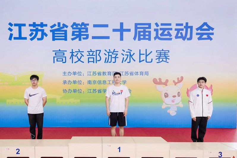 7月9日至11日,江苏省第二十届运动会高校部游泳比赛在我校“水雲方”游泳馆举行。11日上午比赛落下帷幕,我校斩获8枚金牌、3枚银牌,5枚铜牌,团体总分名列第二。校党委副书记、副校长王尧,副校长邓志良为获奖选手颁奖。比赛团体总分前八名分别是:南京航空航天大学、南京信息工程大学、南京工业大学、江苏警官学院、河海大学、南京林业大学、南京大学、南京理工大学和南京中医药大学(并列)。