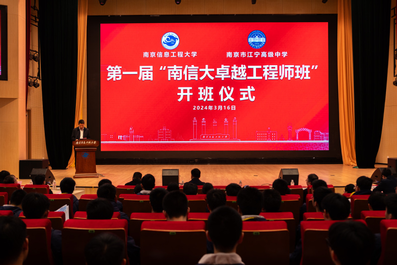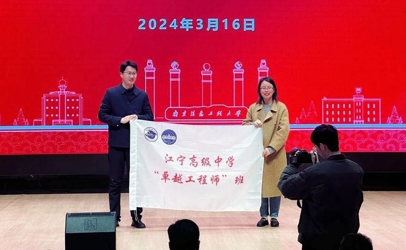 会上,遥感与测绘工程学院党委书记耿小雷为江宁高级中学第一届“南信大卓越工程师”班授旗。