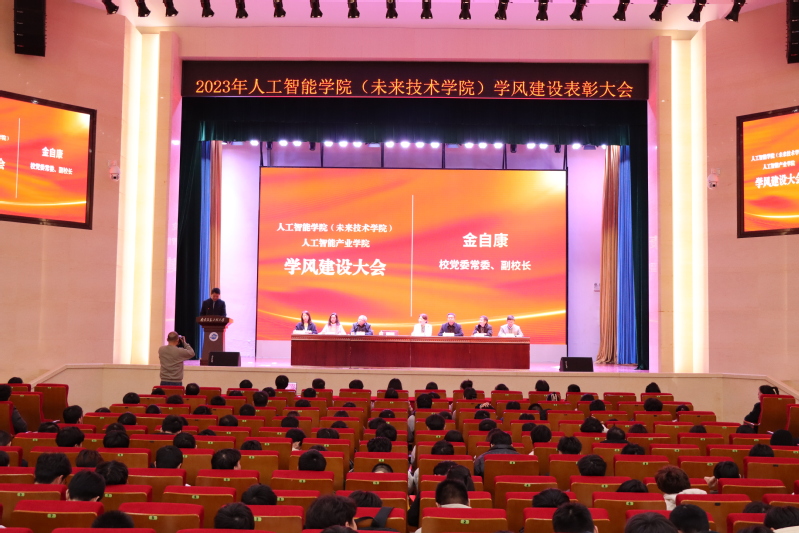 为了营造浓厚的学习氛围,加强优良学风建设,助力学生成人成才,12月3日人工智能学院(未来技术学院)在风云剧场举办学风建设表彰大会。我校副校长金自康出席会议,研工部、学工处、学院领导班子、班主任以及全体学生参加本次大会。大会由党委副书记、副院长秦书乐主持。