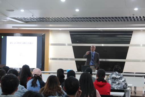 4月15日下午,剑桥大学袁博平博士在图书馆报告厅作了题为“成人二语习得的困难与对策”的学术报告。文学院院长李建波主持本次报告。文学院对外汉语专业教师与学生,以及众多外语爱好者参加报告会。