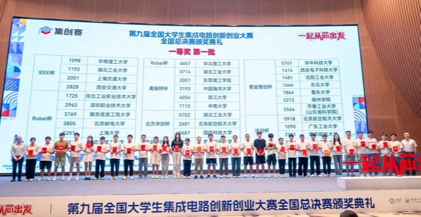 8月21日至24日,由工业和信息化部人才交流中心主办的第九届全国大学生集成电路创新创业大赛(集创赛)全国总决赛在上海圆满落幕。我校学子再创佳绩,集成电路学院陶治老师指导的“光谱智维”团队(成员:储小旭、万厚锋、郑宇昕)在Robei杯赛道中表现卓越,勇夺全国一等奖;祁博宇、冒晓莉老师联合指导的团队在曾益慧创杯赛道获得全国三等奖;仲坤、郭晓丹老师联合指导的团队在海云捷讯杯赛道获得全国三等奖。学校荣获优秀组织协同奖。