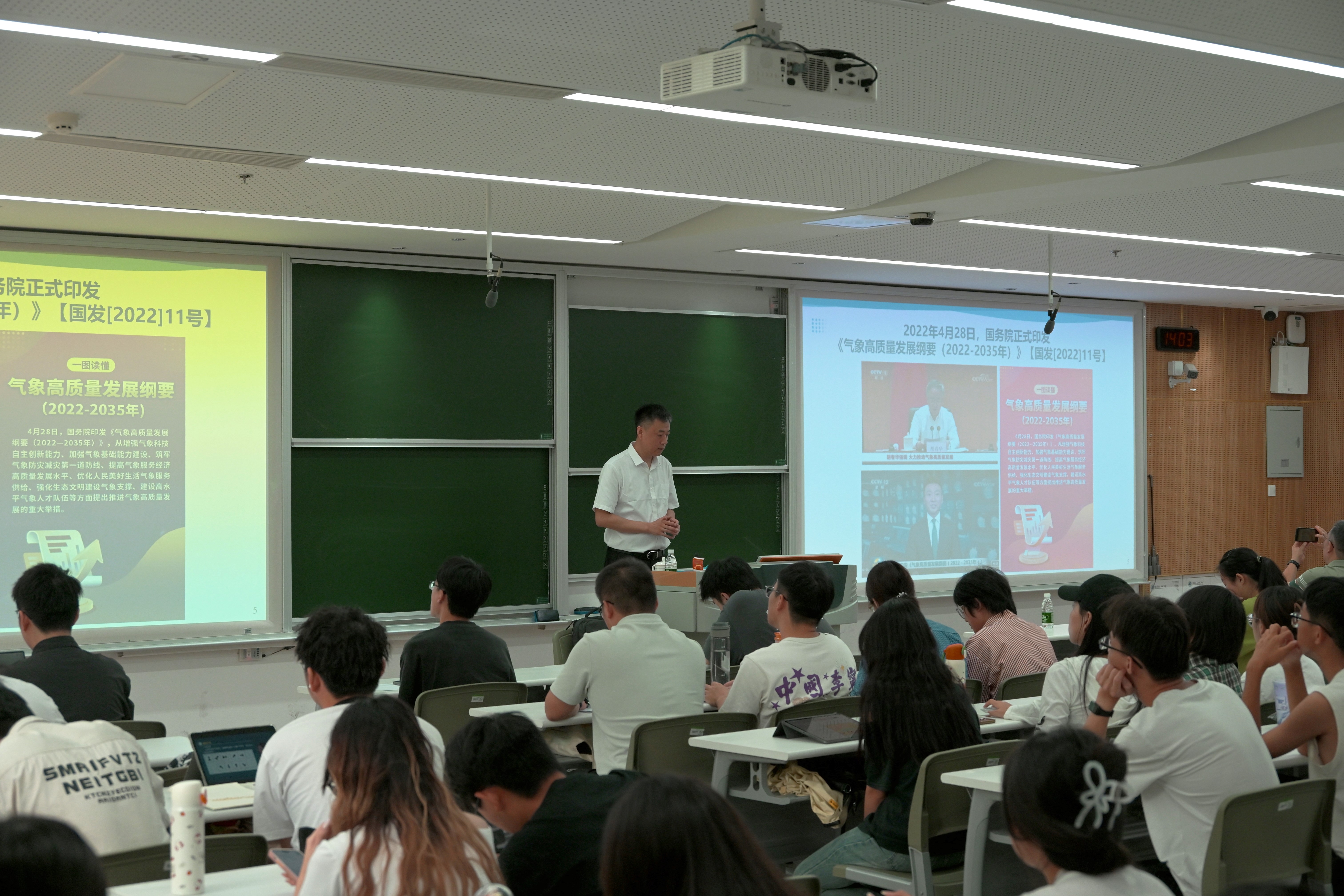 9月17日,《现代气象事业发展概论》课程第二讲在明德楼N315开课,中国气象科学研究院副院长李建研究员应邀来校授课,校党委副书记闵锦忠出席并主持。闵锦忠表示,《现代气象事业发展概论》课程的开设是落实《教育部 中国气象局关于进一步加强气象人才培养工作的若干意见》的重要举措,对于深化局校协同育人、推动气象教育高质量发展具有重要意义。他鼓励同学们珍惜此次与专家面对面的授课机会,认真听讲、深入思考、积极交流,深刻理解气象事业服务于国家需求和人类命运共同体的重大意义。