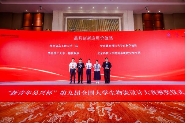 近日,我校学子在新青年吴兴杯第九届全国大学生物流设计大赛全国总决赛中创造了历史性的突破,由邱玉琢教授、张鹏飞老师指导,王夏、林云颉、向辰、李洪烨、马俊杰五位同学组成的南京信息工程大学代表队凭借出色的表现,首次夺得该项赛事的最高荣誉——本科组全国一等奖,并同时荣获最具创新应用价值奖(本科组仅三个队伍荣获)。