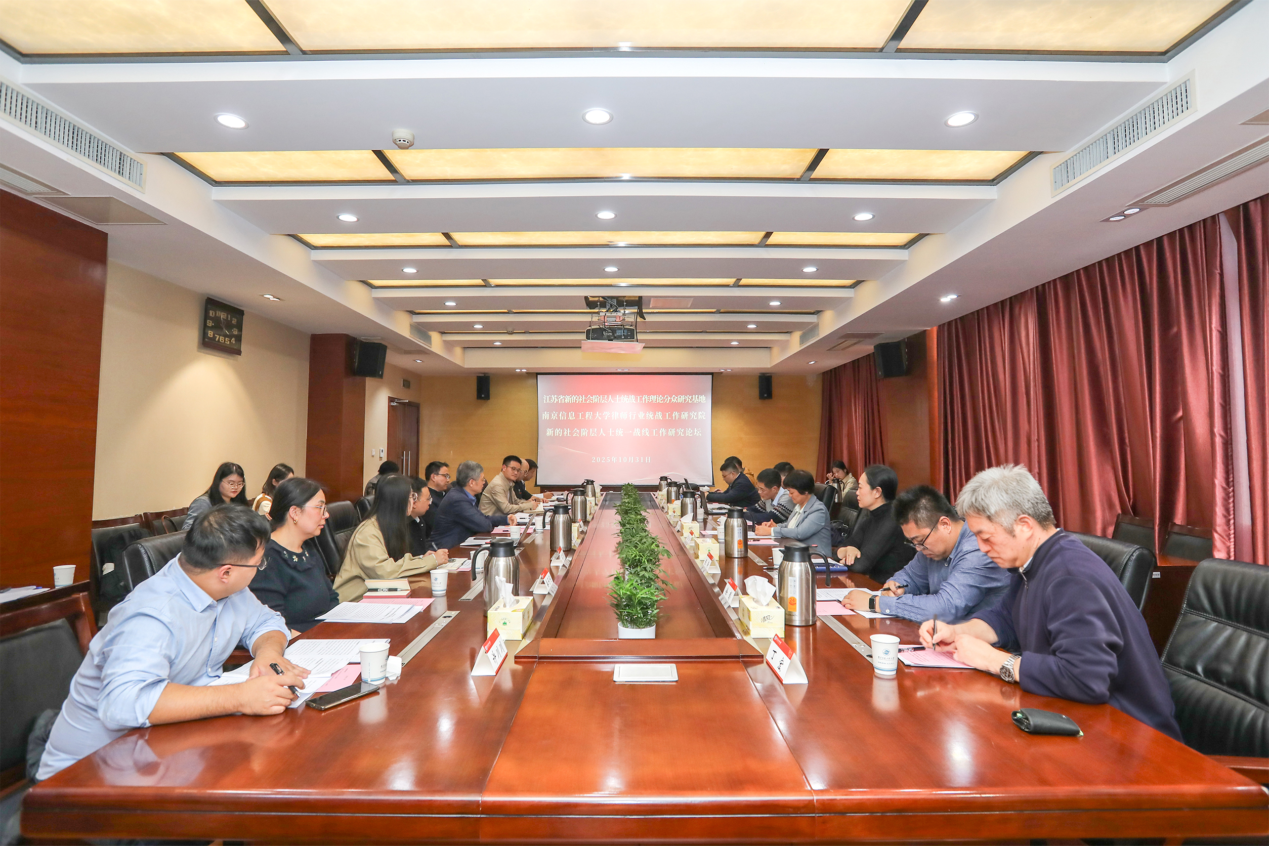 10月31日,由中国统一战线理论研究会新的社会阶层人士统战工作理论研究基地、江苏省新的社会阶层人士统战工作理论分众研究基地(律师行业统战工作研究院)联合主办的“新时代新的社会阶层人士价值引领与统战理论创新”研究论坛在我校举办。校党委常委、副校长朱大梅,全国政协委员、省新的社会阶层人士联谊会会长魏青松,研究基地学术委员会主任、南京财经大学正校级领导焦富民,省委统战部研究室三级调研员孙风华等出席。基地特聘研究员、学校相关职能部门、学院负责人参加论坛。论坛由我校党委常委、党委统战部部长陈涛主持。