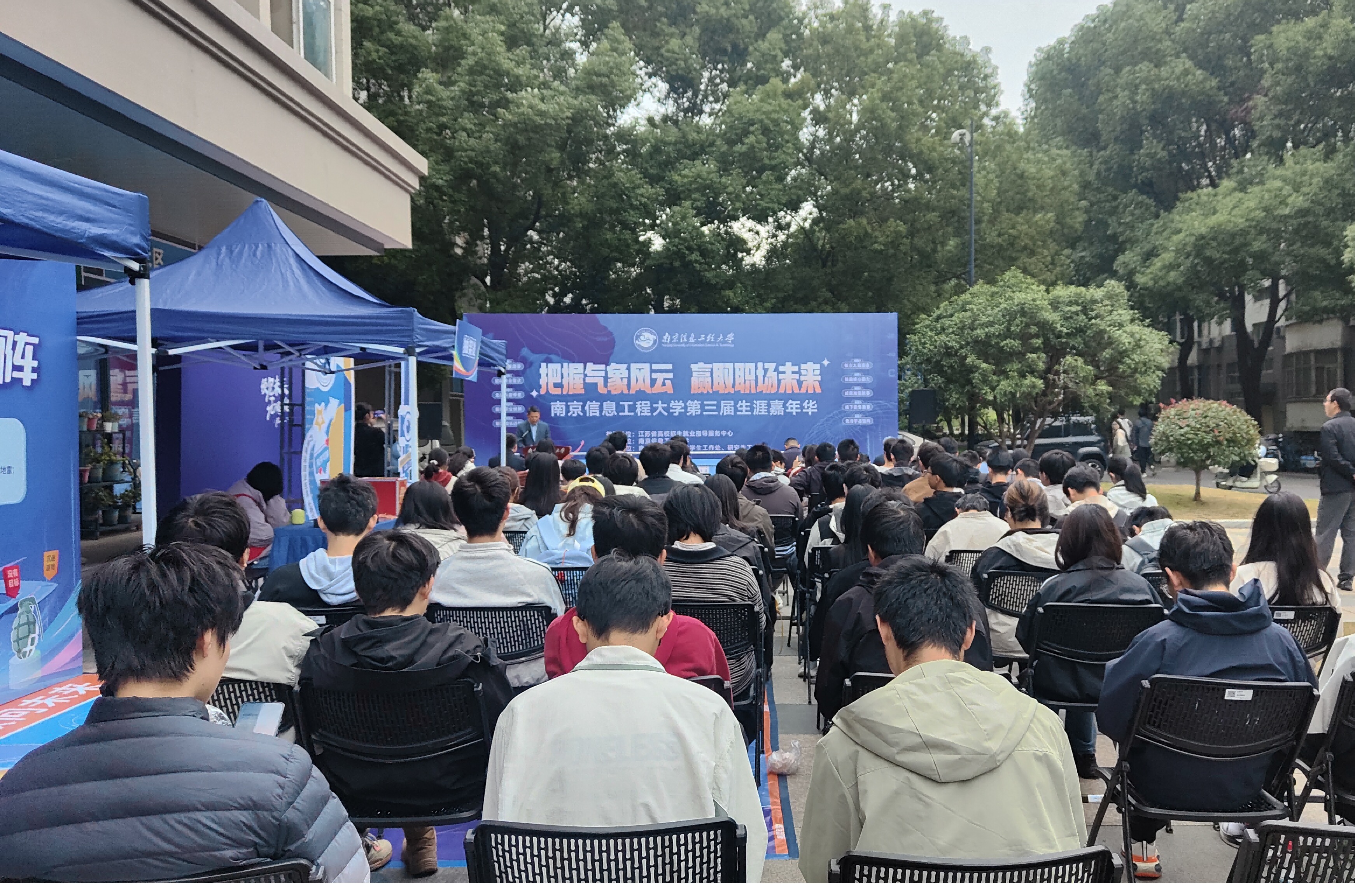 11月6日至9日,南京信息工程大学第三届大学生生涯嘉年华在晖园社区门前广场举办。本次活动由江苏省高校招生就业指导服务中心指导,学生工作处、研究生工作部联合主办,以“把握气象风云,赢取职场未来”为主题,通过为期四天的沉浸式生涯体验活动,全面激发学生生涯规划意识,吸引了全校各年级学生的积极参与。