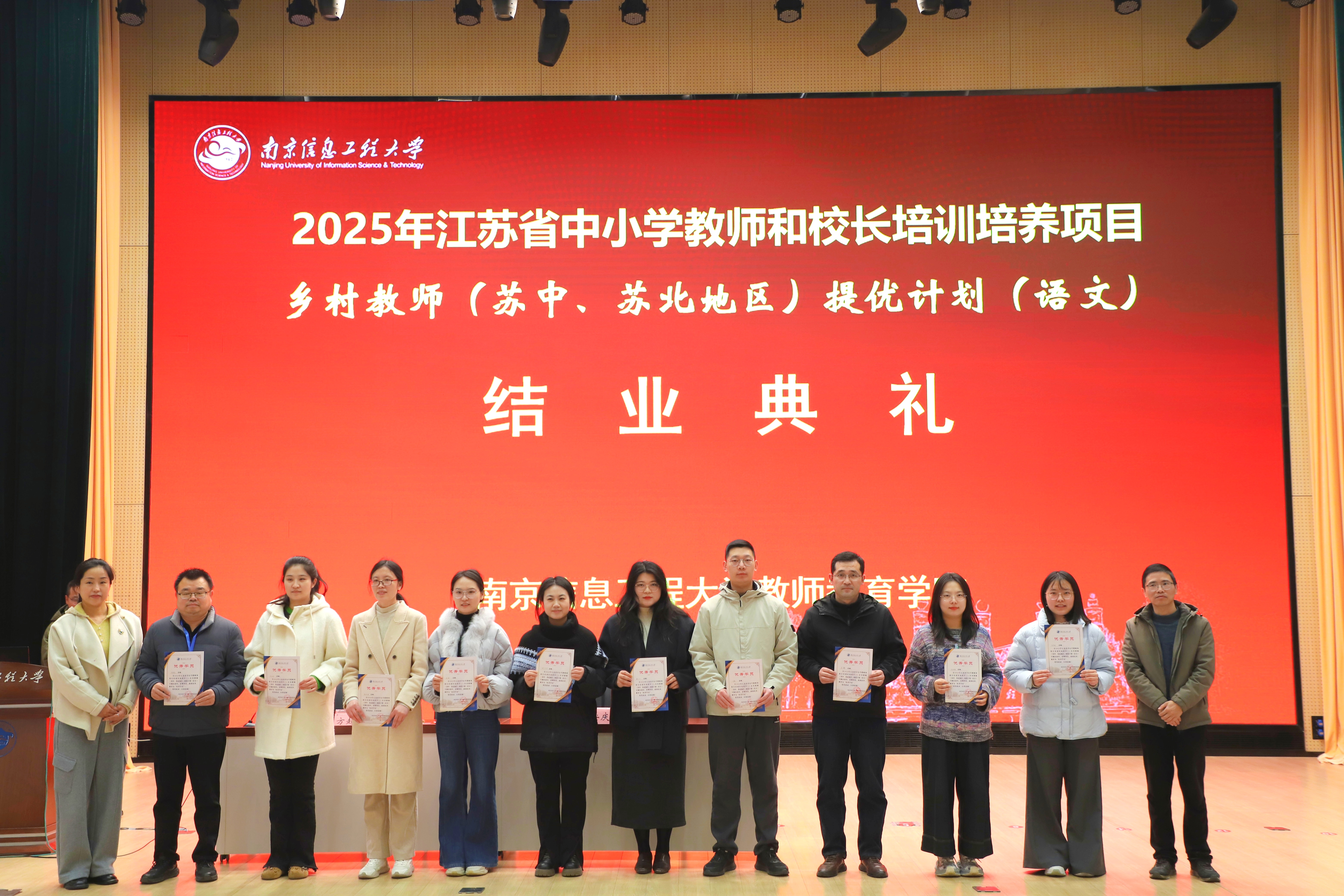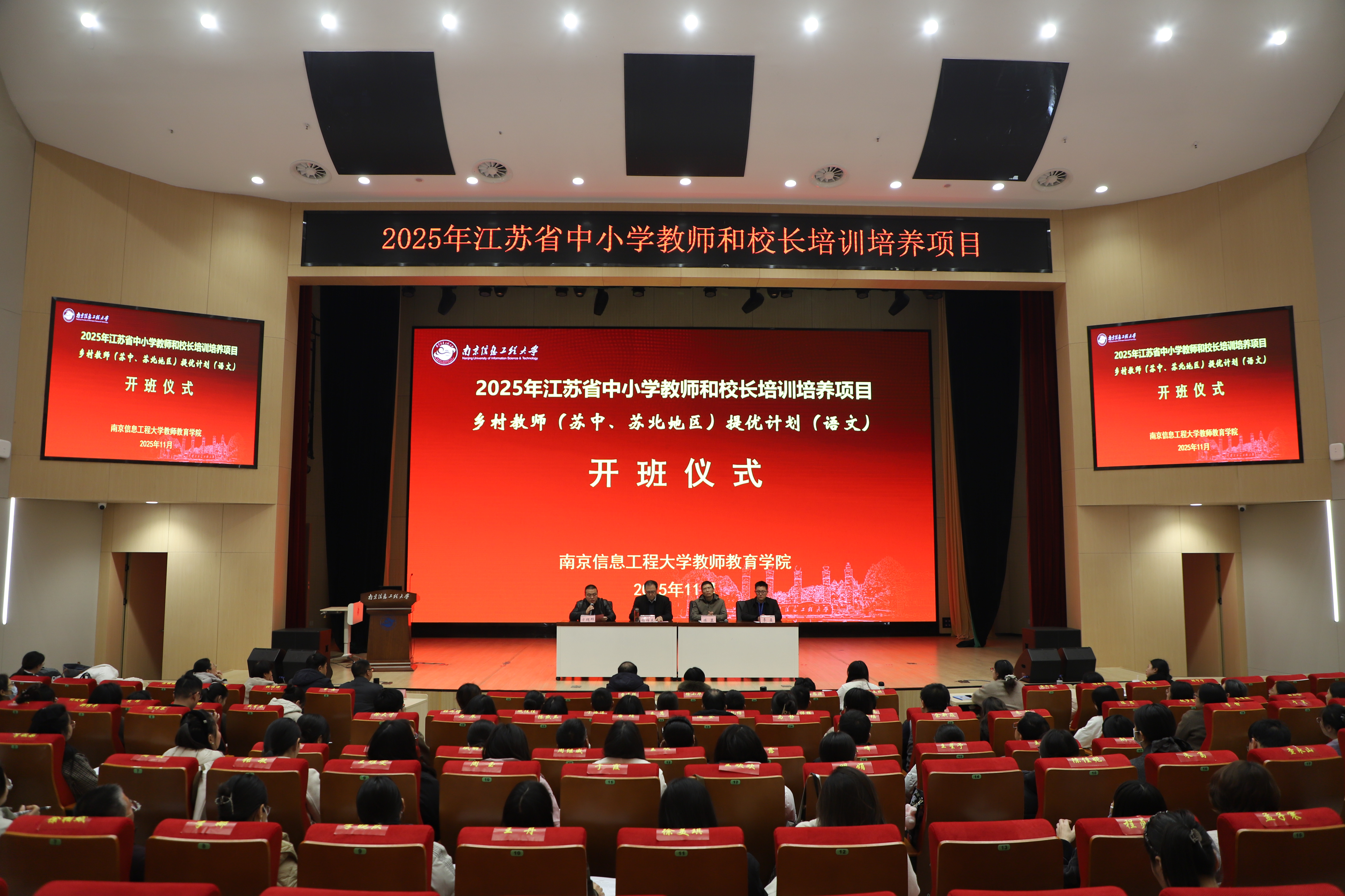 为深入贯彻国家教育现代化战略,推动义务教育优质均衡发展,切实提升乡村教师队伍专业水平,经江苏省教育厅的组织遴选,由南京信息工程大学承办的“2025年江苏省中小学教师和校长培训培养项目——乡村教师(苏中、苏北地区)提优计划”语文骨干教师研修班,于2025年11月28日至12月2日成功举办。本次研修班汇聚了来自苏中、苏北地区的百名语文教学骨干,通过理论引领、实践观摩与深度研讨,为江苏乡村语文教育的提质增效注入新动能。