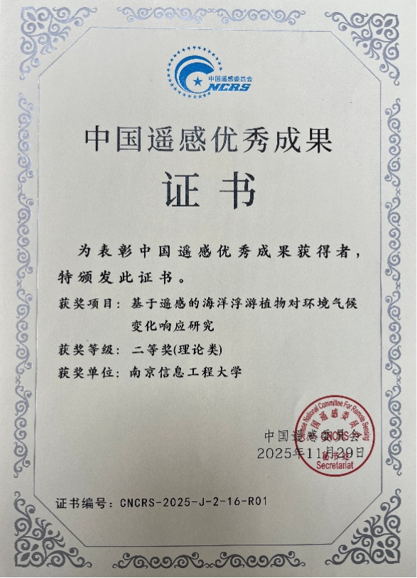 近日,第二十三届中国遥感大会在广州举行。海洋科学学院孙德勇教授课题组申报的“基于遥感的海洋浮游植物对环境气候变化响应研究”荣获中国遥感优秀成果二等奖。