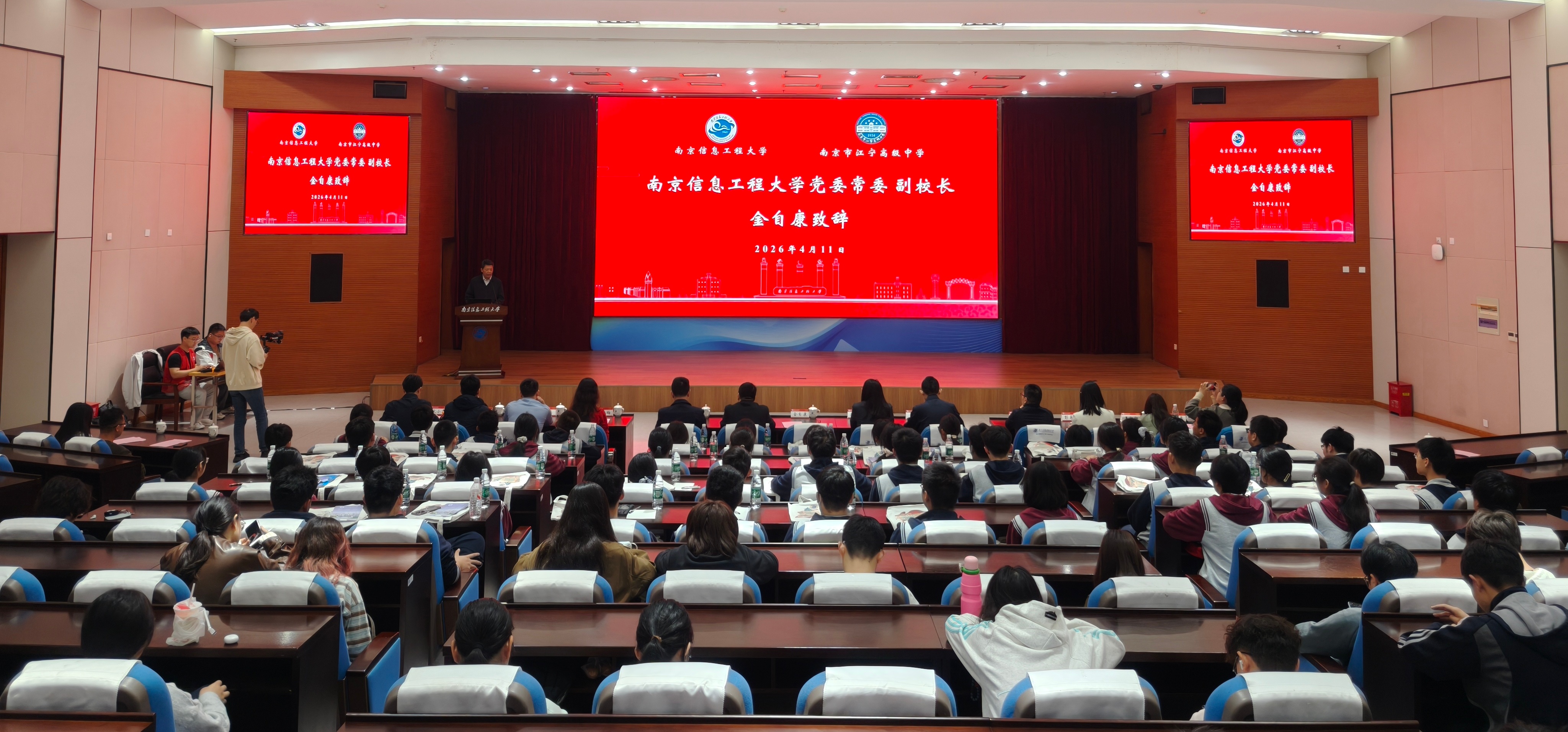 4月11日,我校与南京市江宁高级中学联合举办的第三届“卓越工程师班”开班仪式在气象楼报告厅举行。南京市江宁高级中学校长陈立军、纪委书记孔素琴,我校副校长金自康出席仪式。学工处、遥感与测绘工程学院相关负责人,第三届“卓越工程师班”全体学生以及两校师生代表参加活动。活动由遥感与测绘工程学院党委书记耿小雷主持。