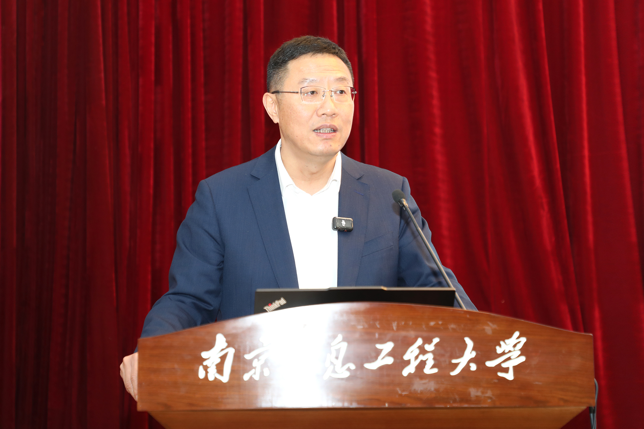 4月22日下午,由江苏省教育厅、省科技厅、省工信厅、省人社厅联合主办,我校承办的“企业家进高校”前沿大课堂第一讲在气象楼一楼报告厅举行。本次活动特邀南京钢铁股份有限公司常务副总裁徐晓春以《钢铁工业制造数智化转型的实践与探索》为题作专场授课。我校副校长朱大梅出席活动。讲座由人工智能学院(未来技术学院)副院长(聘任)(主持工作)姜峰主持,全校200余名师生现场参与。