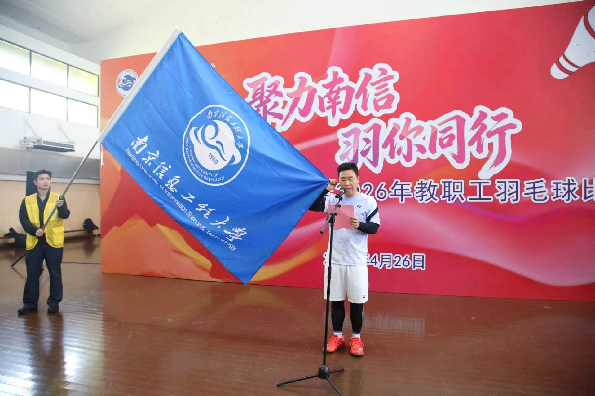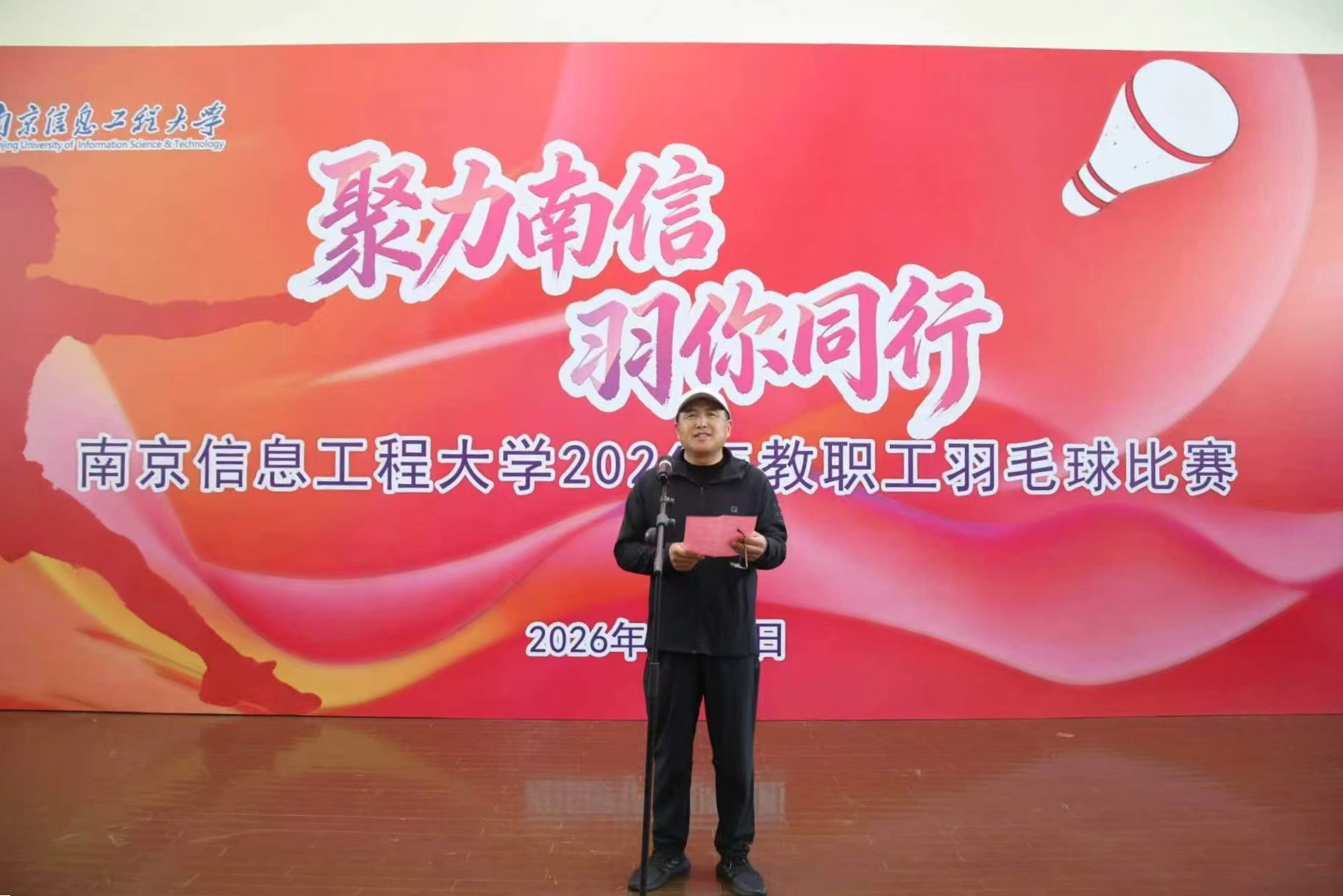 4月26日,我校2026年“聚力南信 羽你同行”教职工羽毛球比赛在教工活动中心一楼主馆火热开赛。校党委副书记王培君出席开幕式并致辞。开幕式由校工会主席徐萍主持。
