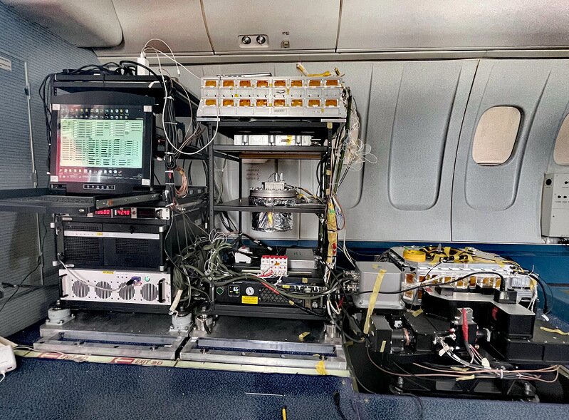 机载校飞实验对星载载荷的关键参数确定及反演算法开发具有十分重要的意义。大气物理学院卜令兵教授团队联合中科院上海光机所、南京先进激光技术研究院等单位研制了星载激光雷达的机载缩比系统一套。该缩比系统与星载激光雷达具有相同的原理和结构,为适用于机载观测将收发能力进行了等比缩小,因此,可以利用该缩比系统开展机载观测实验以模拟星载激光雷达的在轨观测效果。