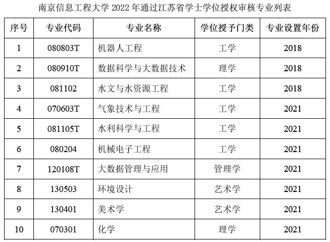 近日,省教育厅公示了2022年度江苏省学士学位授权专业审核结果,我校上报的机器人工程等10个专业通过学士学位授权审核。