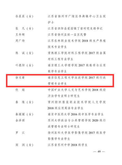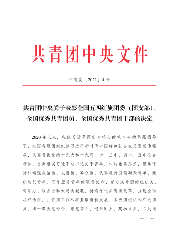 近日,共青团中央发布《关于表彰全国五四红旗团委(团支部)、全国优秀共青团员、全国优秀共青团干部的决定》(中青发〔2021〕4号),我校法政学院徐文豪获评2020年度“全国优秀共青团员”荣誉称号。我校自2018年以来连续四年获此殊荣。