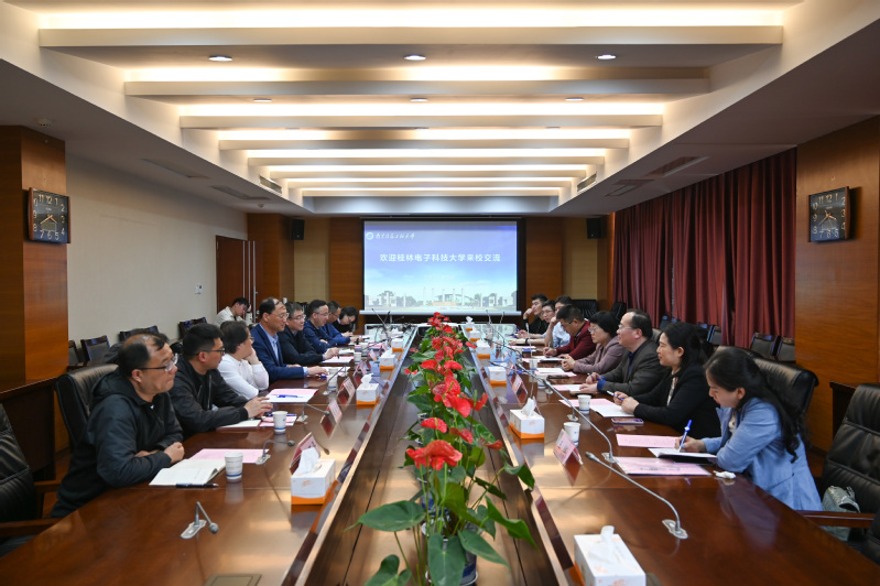 王尧对桂林电子科技大学一行来校调研表示欢迎,并简要介绍了我校发展情况。他说,近年来,南信大坚持“开放、协调、特色”发展理念,主动服务国家战略需求、融入地方经济社会,不断加强高等教育内涵建设,在师资队伍、学科发展、人才培养和国际化办学等方面走出了一条具有南信大特色的发展之路。围绕立德树人的根本任务,学校加强思想政治教育的顶层设计,积极构建“大课程思政”体系,凝聚三全育人共识,强化思想引领实效,力促培根铸魂再上新台阶。他希望双方更加密切交往,发挥各自优势,探索两校协作的发力点,开拓深度合作的新空间,实现两校共赢发展。