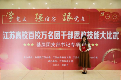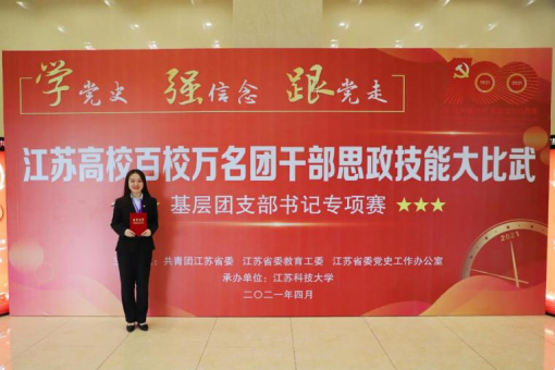 4月25日,由共青团江苏省委、江苏省委教育工委、江苏省委党史工作办公室主办的“学党史,强信念,跟党走”江苏省百校万名团干部思政技能大比武——基层团支部书记专项赛决赛在江苏科技大学落下帷幕。通过主题团课宣讲、主题团日活动展示、“一站到底”知识竞答等环节的层层选拔,我校学子周雪婷、王浩然脱颖而出,分获一等奖和二等奖。