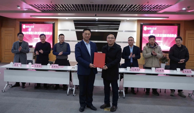 王尧为校友颁发了学生校外创新创业导师聘书,并代表学校向世界各地的校友致以新春祝福。他说,南信大是包括所有校友在内的南信大人的大学,学校的发展离不开海内外校友和社会各界长期以来的关心和支持。校友们不忘初心、牢记使命,以不同形式关心支持母校发展,充分彰显了南信大人的责任和情义,全体在校师生深感欣慰和温暖。希望校友们在各自不同的岗位上奋发努力,为在校学生树立榜样,继续在人才培养、科技合作、就业创业等方面深化与母校联系。他表示,南信大是校友们永远的家,时刻欢迎大家携家人和孩子回来畅游,共享母校发展的喜悦。相关部门和学院要创新工作机制,加快推动成立校友组织,充分挖掘凝聚校友资源,开拓校友工作新局面。
