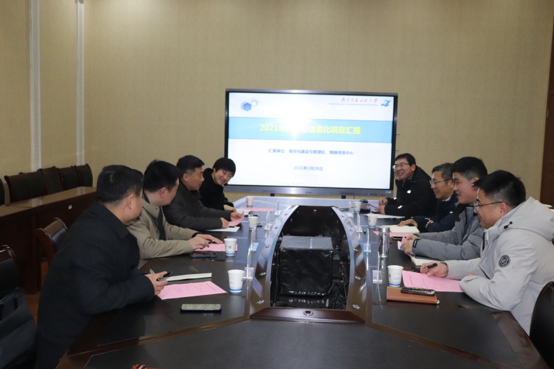 随后,信息化建设与管理处负责人介绍了我校信息化建设情况和2021年建设思路,并从建设的必要性、建设目标、建设内容、预算及建设计划等几个方面作了详细汇报。
