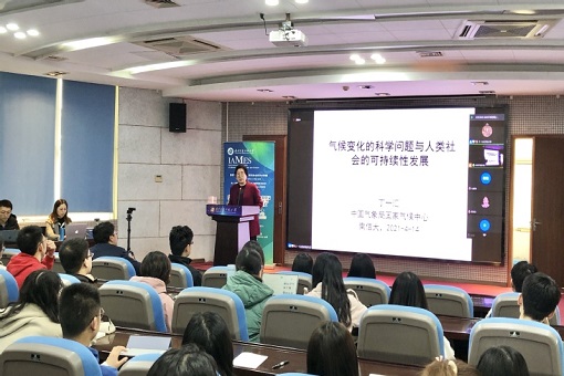 4月14日,国际气象教育与科学研究协会(IAMES)“科学大讲堂”第二讲举行。中国工程院院士丁一汇受邀作题为”气候变化的科学问题与人类社会的可持续性发展“的专题讲座。讲座采用线上线下相结合方式,由我校副校长江志红主持。
