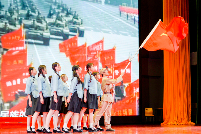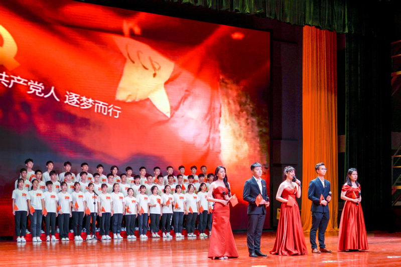 唱演红色经典,礼赞建党百年。会上,学院师生以精心编排、形式多样的文艺节目向党的百年华诞献上最真挚美好的祝福。合唱《没有共产党就没有新中国》、舞蹈《在灿烂阳光下》、独唱《把一切献给党》、朗诵《永远跟党走》、合唱《不忘初心》,参演人员饱含深情,热情讴歌了中国共产党100年来波澜壮阔的光辉历程,抒发了对党的无限忠诚的赤子情怀,充分展示了学院师生坚守初心、砥砺奋进的精神风貌。