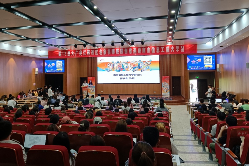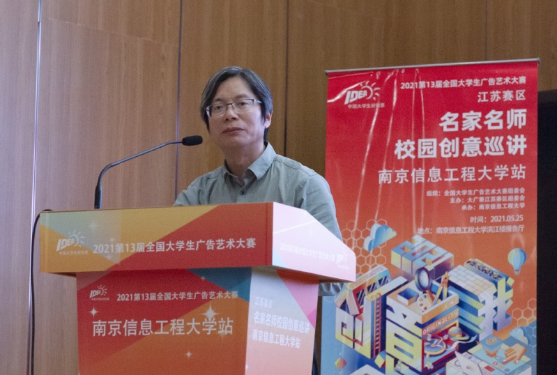 5月25日下午,第13届大广赛江苏赛区名家名师校园创意巡讲活动在我校滨江楼报告厅举行。本次巡讲活动由全国大学生广告艺术大赛组委会组织,大广赛江苏赛区组委会主办,南京信息工程大学承办。江苏省教育厅高教处处长邵进,大广赛国赛组委会副主任、江苏赛区组委会执行主任、南京财经大学副校长乔均,大广赛国赛组委会秘书处推广部主任李勤,江苏省市场监管局广告监管处二级调研员姚海玲,南京市市场监督管理局广告处处长麻丽梅,大广赛终审评委、中央民族大学教授沈虹,江苏赛区组委会副秘书长刘明、吴媛媛,我校副校长张永宏,教务处、商学院和艺术学院的相关领导,以及大广赛赛题解析企业代表、省内高校代表、我校师生代表共计300人参与本次活动。