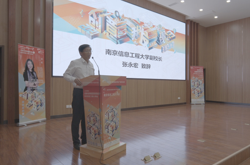 张永宏在致辞中简要介绍了我校六十一年来的发展历程,阐释了我校人才培养体系的架构,重点推介了我校依托双一流建设学科打造拔尖人才培养基地项目,服务江苏经济社会发展情况等。他还重点介绍了我校思政、专业、科创三者融合的具有南信大特色的双创体系。他希望参赛学生都能够通过全国大学生广告艺术大赛施展才华,锻炼创新意识和团队能力,为日后融入社会、奉献国家打下基础,实现自己青春梦想。