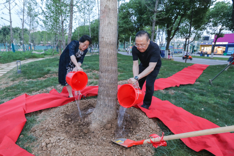 6月8日,江志红陪同张小曳在我校院士林种下一棵银杏树。