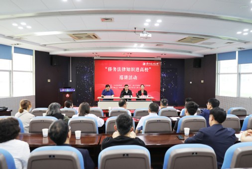 11月2日下午,为深入贯彻党的二十大精神和习近平总书记在江苏考察时的重要讲话精神,学习习近平总书记致欧美同学会成立110周年贺信精神,广泛宣传第十一次全国归侨侨眷代表大会有关部署,切实做好涉侨法律法规政策的贯彻落实工作,更好服务高校归侨侨眷和留学回国人员,由省市区侨联联合举办的“侨务法律知识进高校”巡讲活动在我校举行。南京市委统战部二级调研员周飞,市侨联一级调研员马联钰,江北新区宣传与统战部、区侨联相关负责人,我校党委常委、统战部部长陈涛等出席。巡讲活动由我校侨联副主席、欧美同学会副会长智协飞主持。