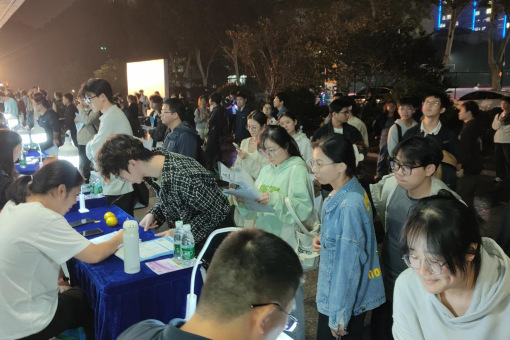 人才夜市在阵阵馥郁的桂花香中人气爆满,企业代表化身摊主“挑灯纳贤”、毕业生穿梭其中“星夜觅岗”,现场同时为学生提供咖啡、奶茶、水果、零食等美食,让企业与学生在轻松氛围下交流沟通,拉近了用人单位和求职者之间的距离,为供需双方搭建更便利的对接平台,用夜晚的烟火气为招聘活动聚人气,点亮就业新“夜”态,呈现就业“新风景”。