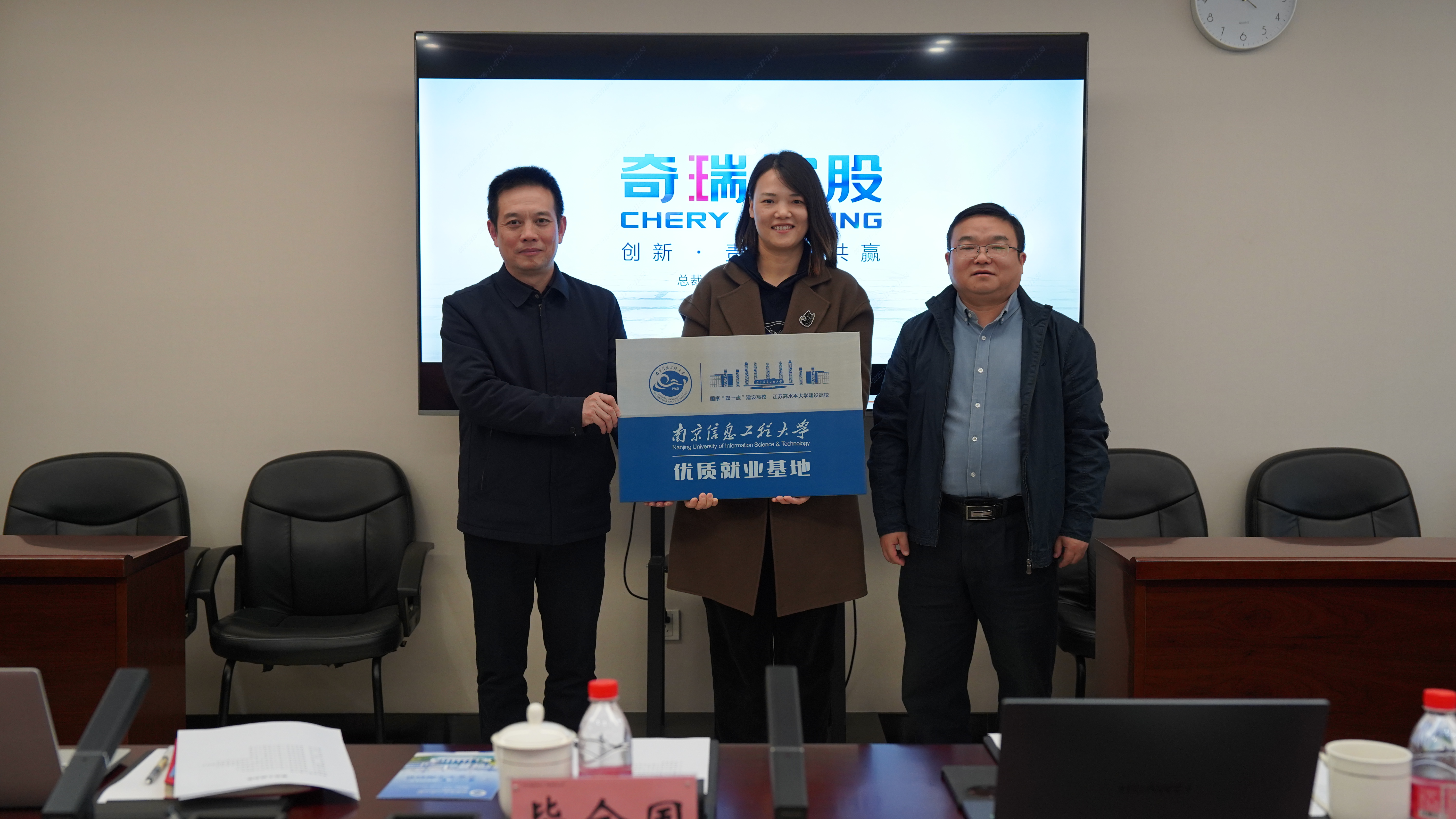 在奇瑞汽车,人力资源部副总监郭毅飞代表公司对陆振宇一行的到访表示热烈欢迎。调研组首先参观了奇瑞汽车先进的超一工厂,实地了解了现代化汽车制造流程与企业生产运营实况。随后,双方在奇瑞汽车研究院举行了座谈会。会上,校企双方围绕产学研协同创新的潜在方向与具体实施路径进行了深入探讨,并就我校研究生的实习实践安排与毕业生招聘需求进行了有效对接。我校2024届校友、奇瑞汽车全球技术创新中心产品开发技术中心工程师曹善杰在会上分享了入职奇瑞以来的工作体验与成长感悟,展现了校友良好的发展状况。为进一步巩固合作成果,陆振宇与文亚平共同代表学校,向奇瑞汽车授予了“优质就业基地”铭牌,标志着双方在人才联合培养与输送方面的合作进入了新阶段。