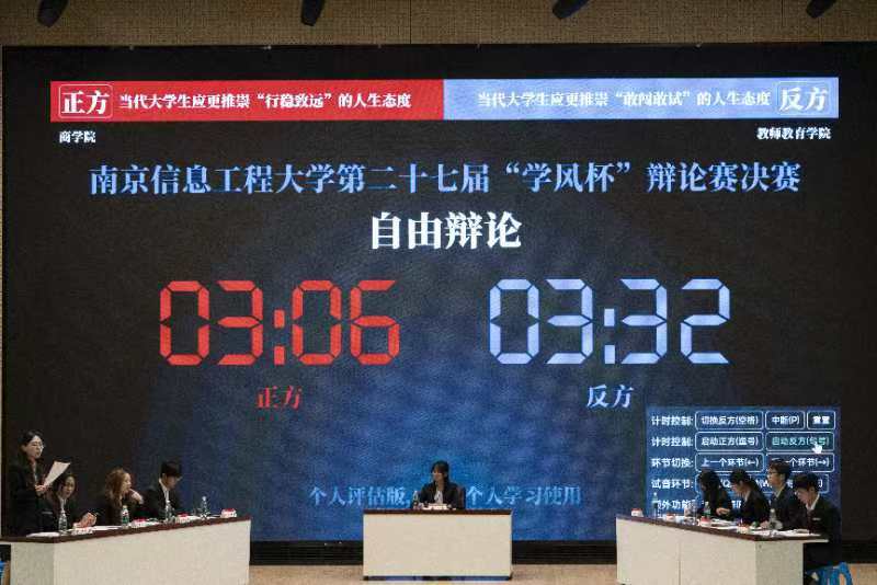 为推动我校大学生提升综合素养、激发创新思维、锤炼逻辑思辨能力,充分展现新时代大学生昂扬向上的精神风貌,近日,由校团委主办、校学生会承办、风语辩论社协办的南京信息工程大学第二十七届“学风杯”辩论赛决赛于临江楼报告厅举办。