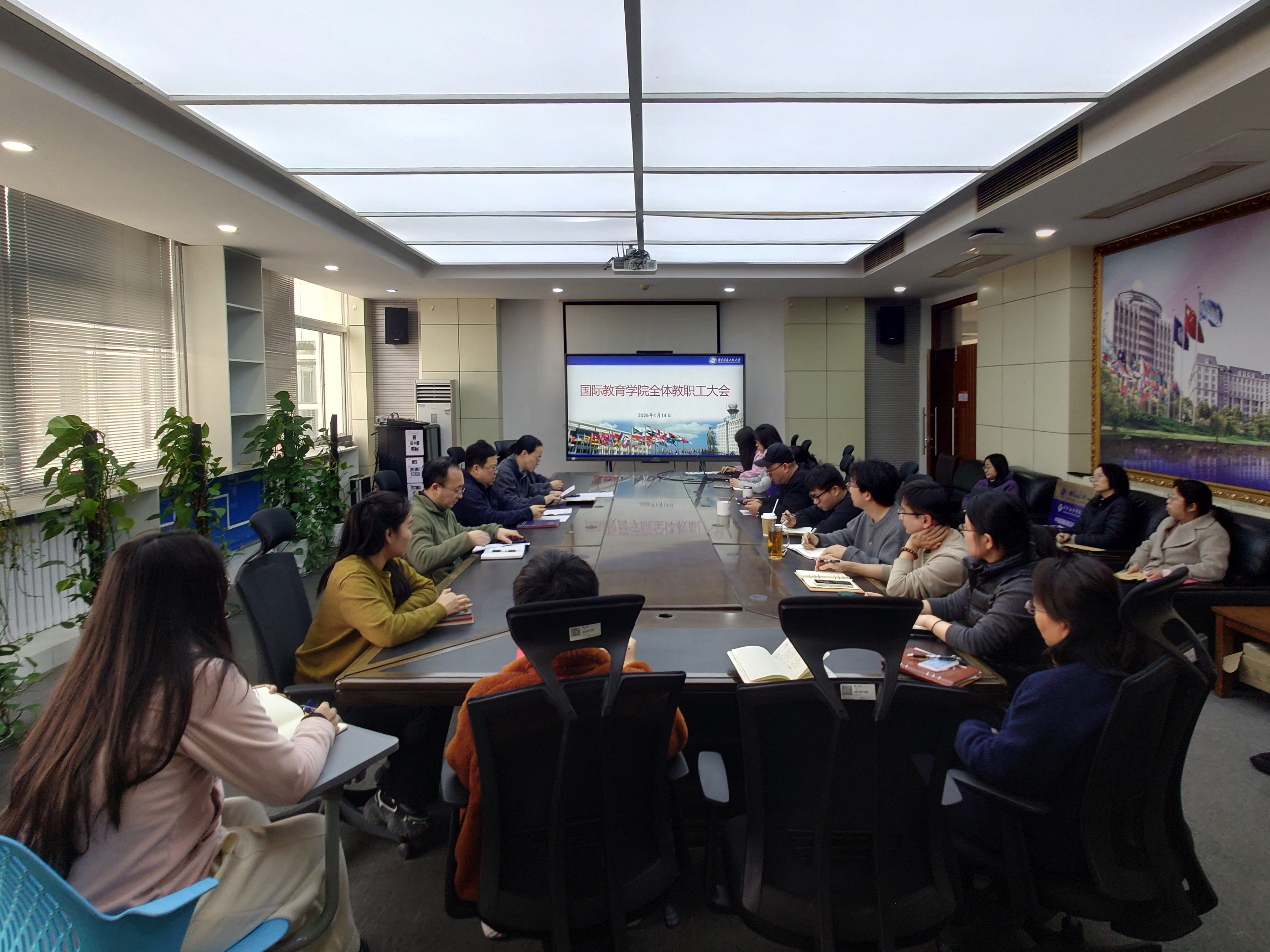1月14日下午,国际教育学院召开学期末全体教职工大会。副院长施宁、副院长王勇、挂职副院长马婧雯及学院全体教职工参会,会议由党总支书记李岩主持。