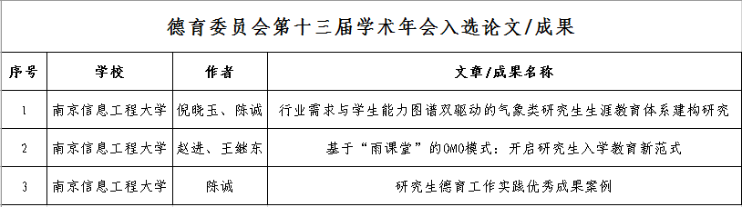 在入选论文方面,倪晓玉、陈诚撰写的论文《行业需求与学生能力图谱双驱动的气象类研究生生涯教育体系建构研究》立足气象行业特色,聚焦研究生职业生涯发展,提出以行业需求与学生能力双驱动为核心的研究生生涯教育体系构建路径,具有较强的理论价值和实践指导意义。