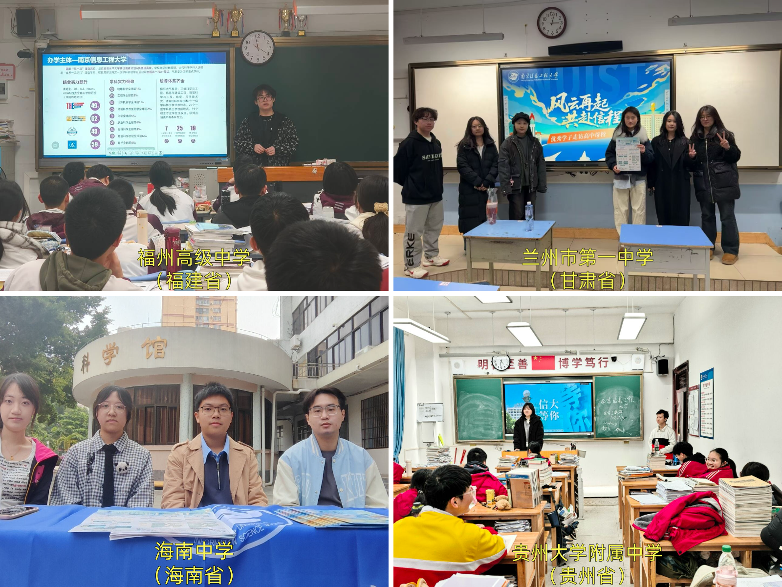 活动开展期间,各学院参与学子怀着对母校的眷恋与对南信大的热爱,重返高中母校开展宣传活动。学子们以优秀南信大学子身份站上讲台,通过精心制作的视频、PPT,用鲜活案例向学弟学妹全面介绍我校招生政策、录取位次、优势专业、科研成果及校园生活,让大家直观感受学校办学实力与育人温度。为扩大宣传实效,学子们走进班级、体育馆等场所,通过宣讲、咨询、展板等多种形式,讲好“南信大故事”、传递“南信大声音”。活动中,学子们用照片、Vlog定格精彩瞬间,创建微信群、QQ群,活动结束后持续为学弟学妹答疑解惑、分享备考经验,搭建起长效沟通桥梁,增强了宣传实效。